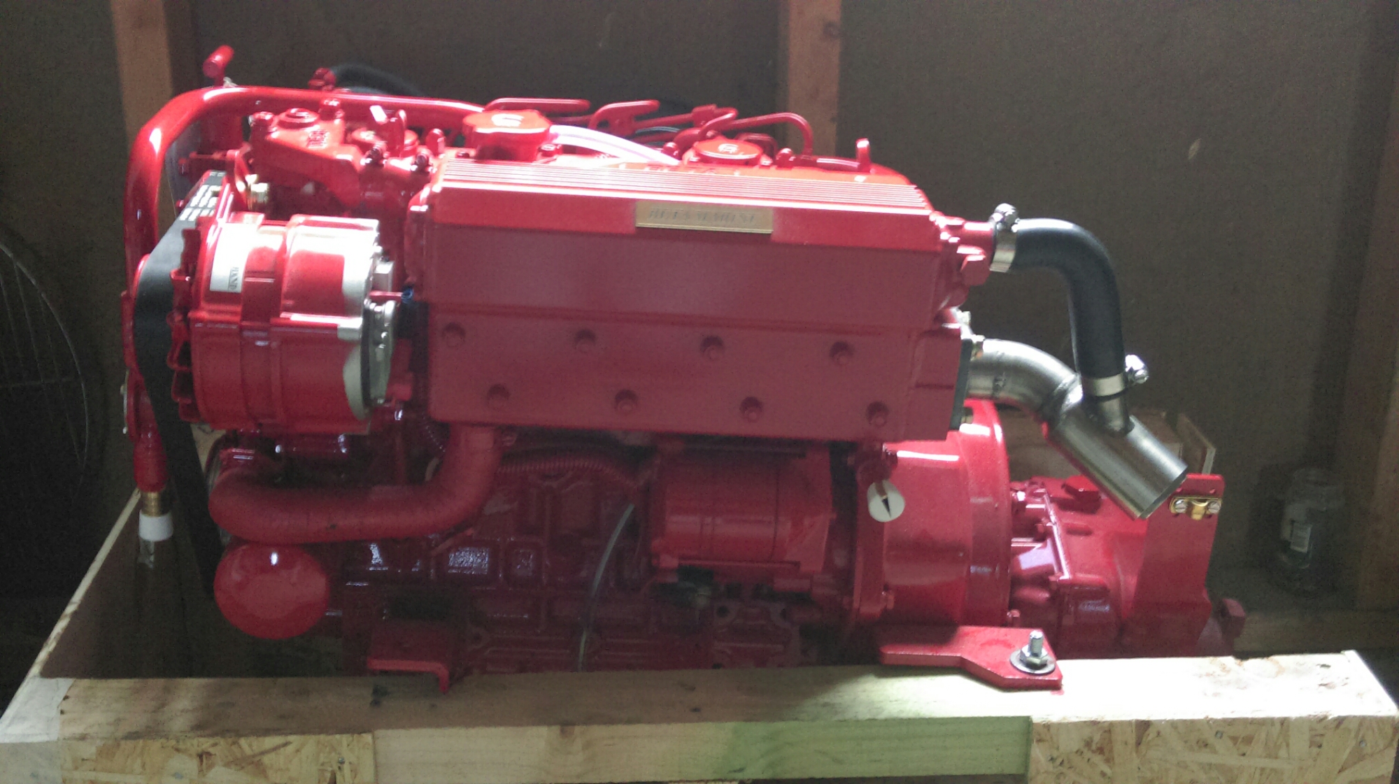 The new engine is waiting in the garage, ready to be installed. It’s a Beta 35, based on a Kubota engine. A little bigger than the old Volvo, four cylinders and a lower rpm, so should give quieter service.