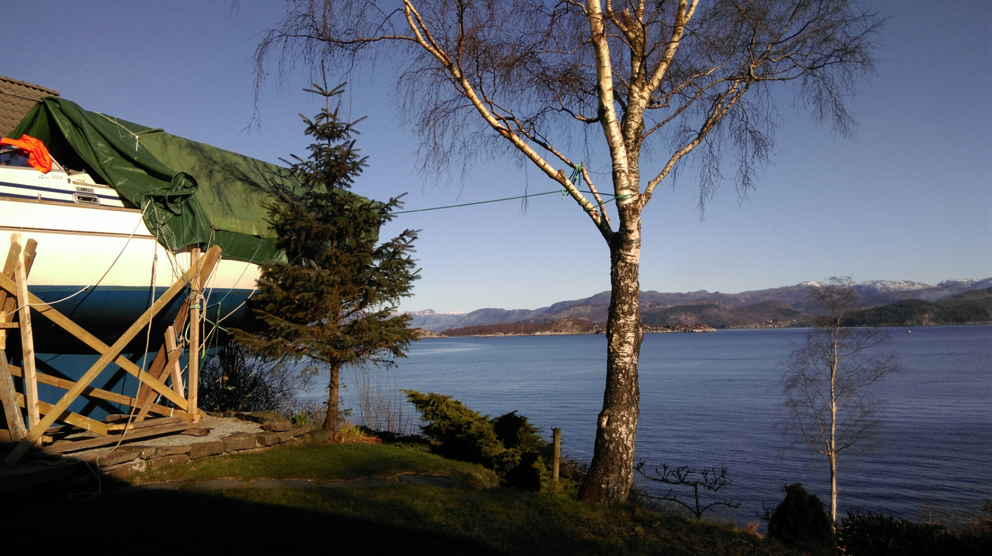 Tuesday morning, 21. April, I took the boat to town. With the new engine it took me 1 hr 20 min, about 20 minutes shorter than before. Wednesday afternoon there was a nice NW breeze. I had the most wonderful sail home in the sun. Fantastic to look over the sea on to the low mountains, still with snow on. And to feel the wind take hold and push the boat forward. Most of the time the boat went close to hull speed, between six and seven knots.