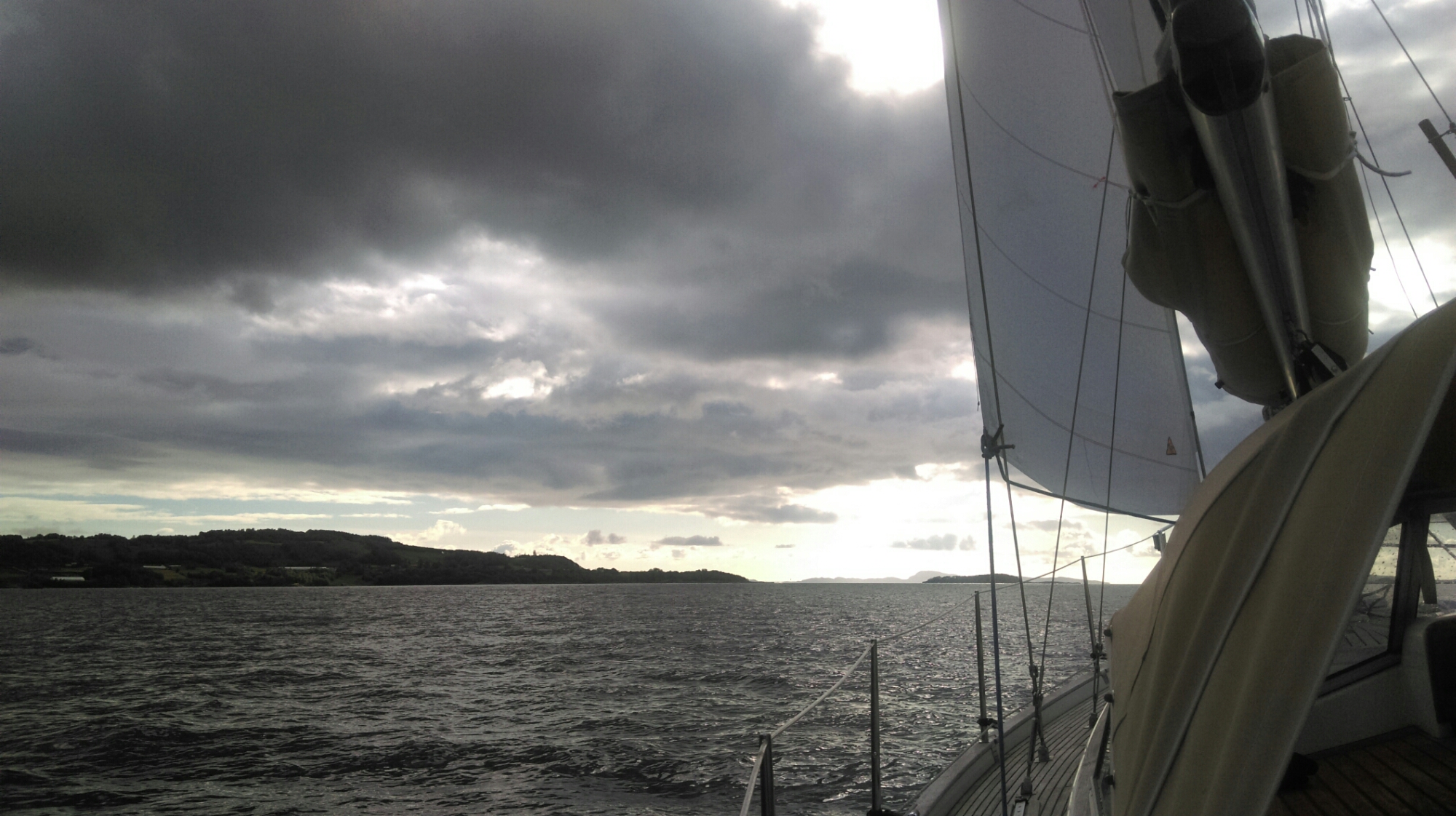 Sailing around Finnoy on an evening in late June. Steady NNW breeze. Sky is clearing up in the west. And soon: summer vacation 🙂