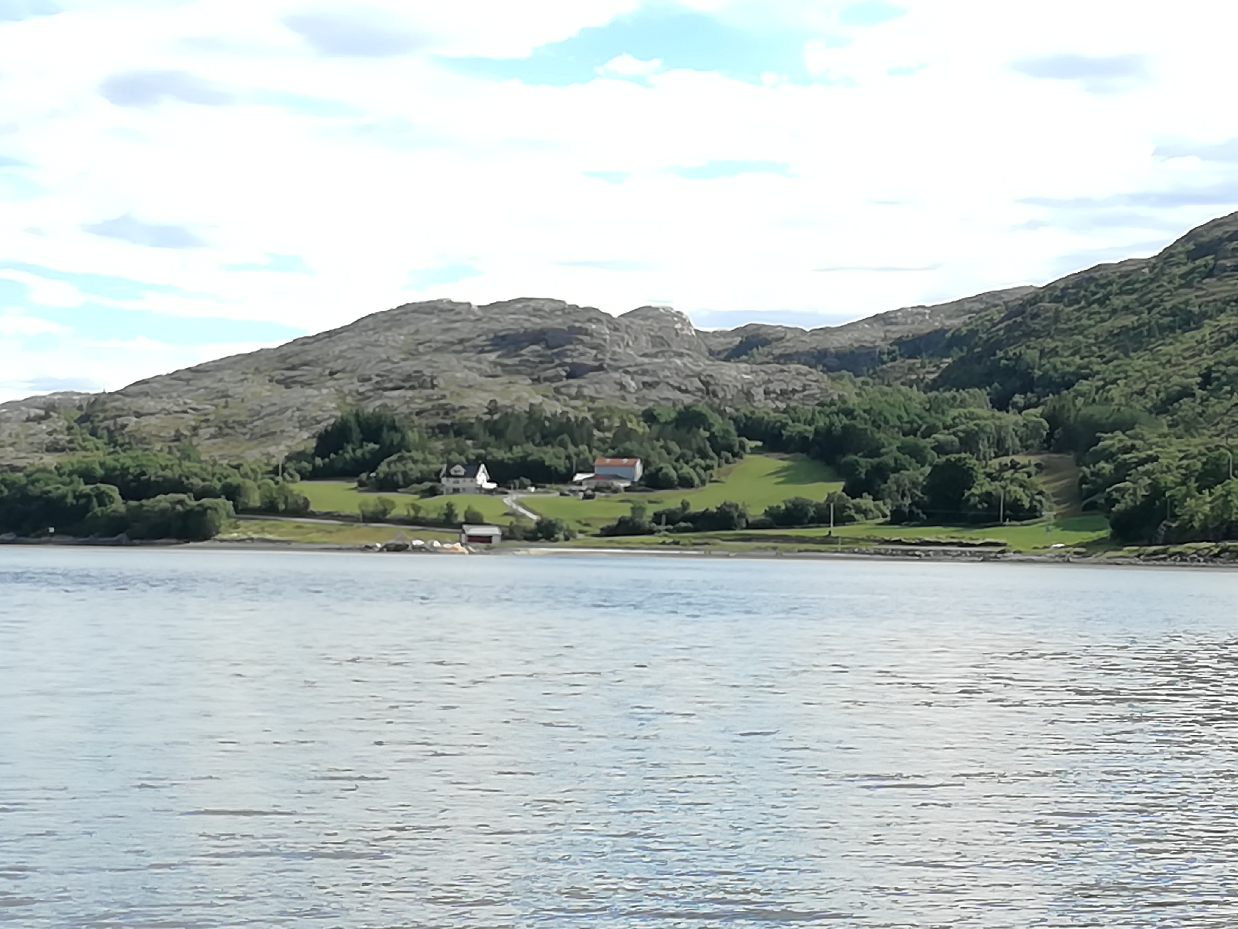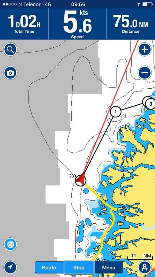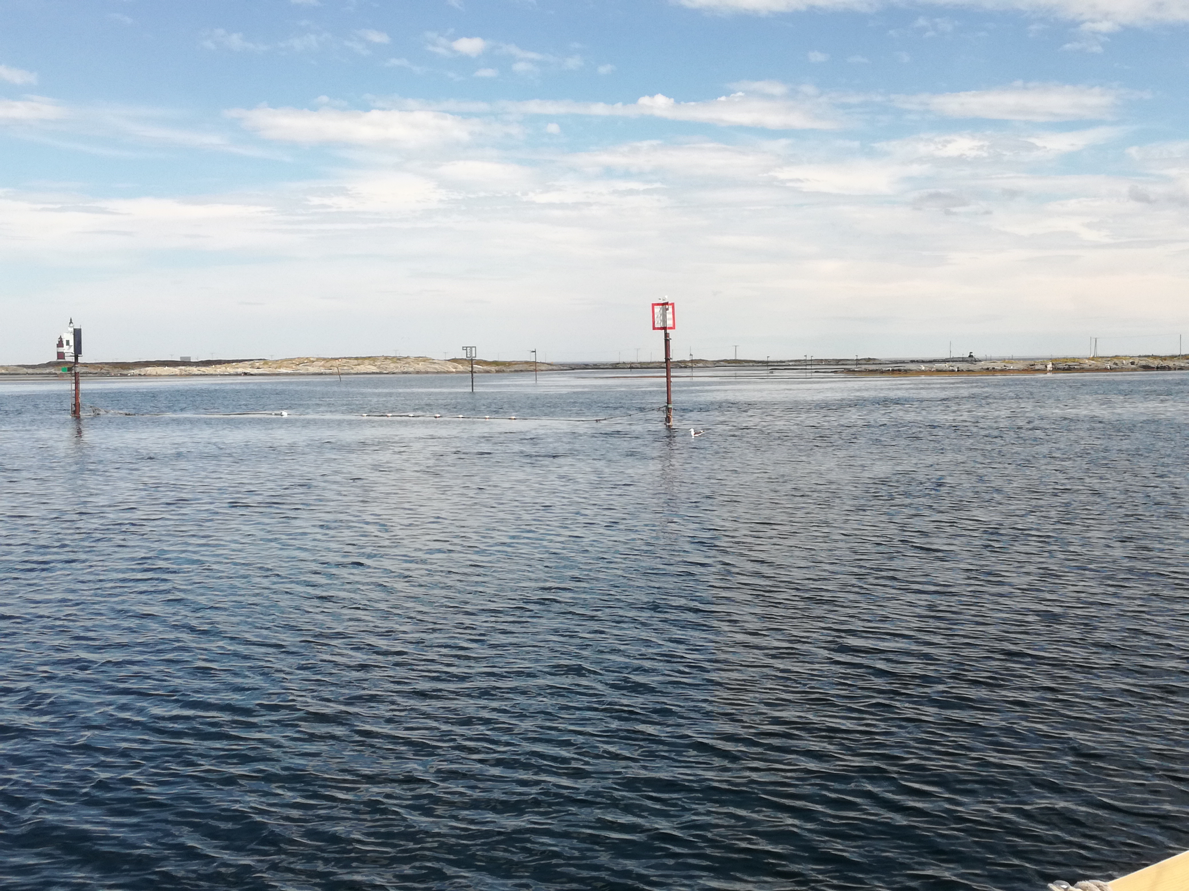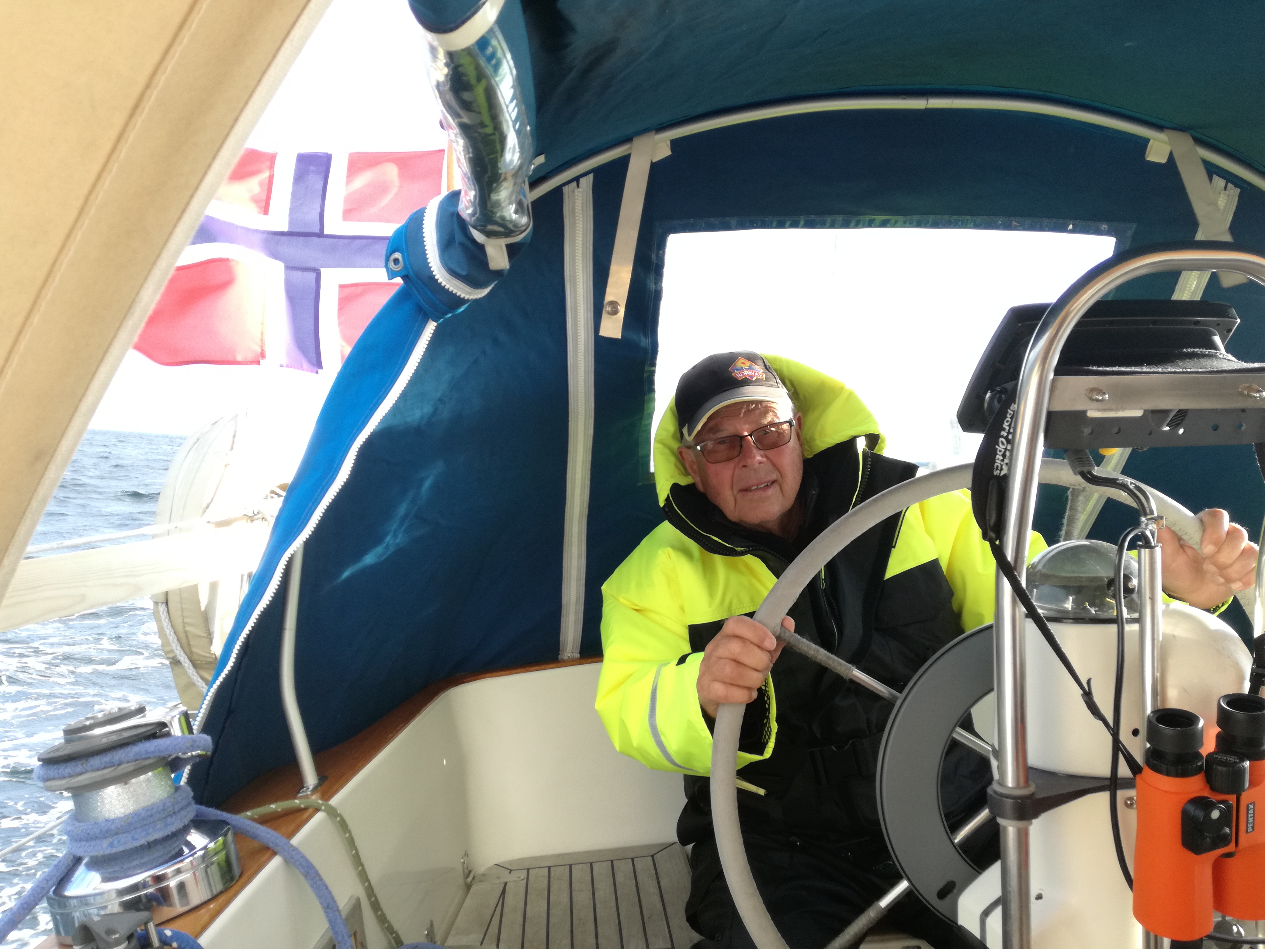 We left Veiholmen early, at 06.30, through a narrow channel to the north east. It is well marked, as are all the common and less common seaways along the coast. Having an old skipper on board has been very interesting and helpful, and good company. I learn a lot about coastal navigation. And hear many stories from his almost 65 years at sea. He started with his father when he was 15 with local traffic along the west coast of Norway, and took part in herring fisheries north of Iceland when he was 18.