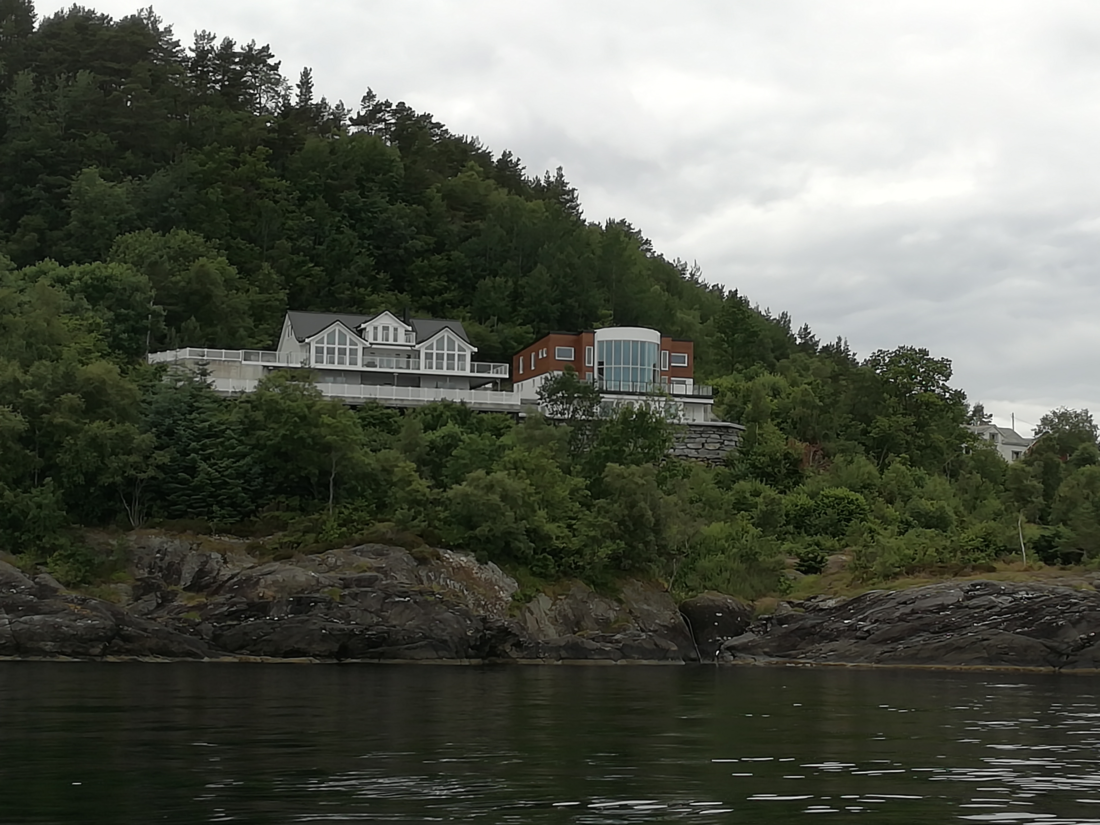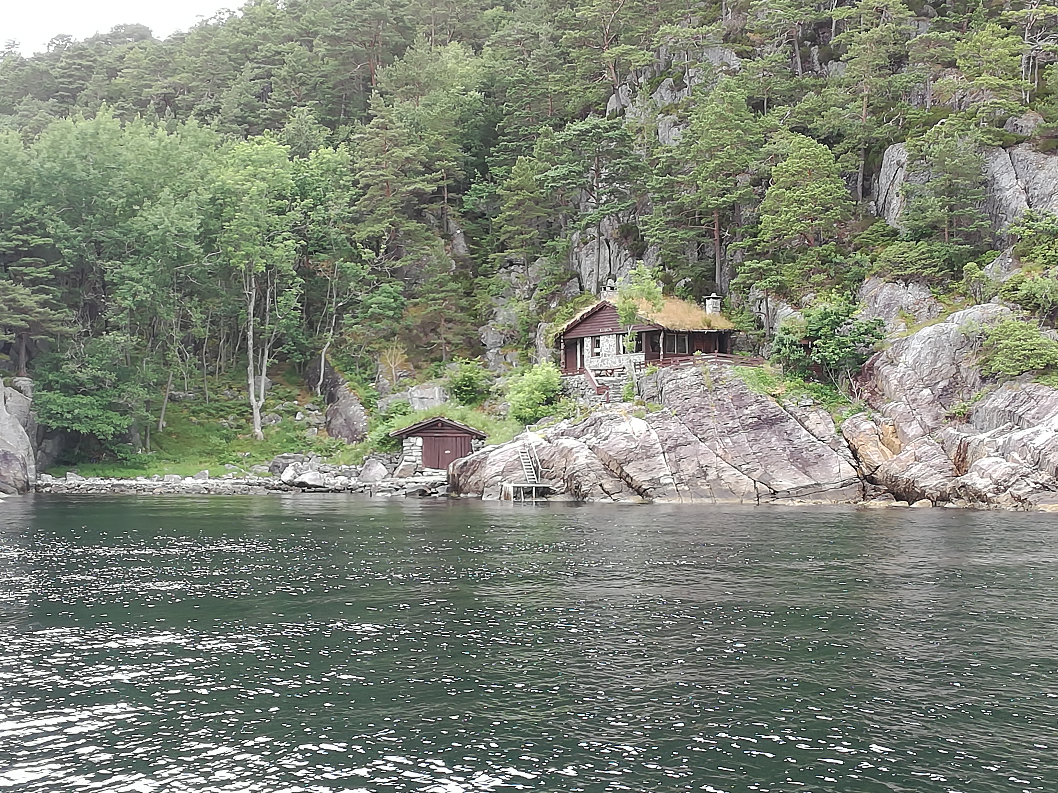 The first rainy day since before Bergen! I was invited by Gunhild and Nils, together with Kjartan, who also has a house here, for coffee and waffles, and to watch an animation of the community here as it looked like around 1900. Nils has collected a huge amount of information from historic documents, learned CAD drawing, and with the help of an architect company made an impressive presentation of the islands and the community. He estimates that he has spent around 3000 hours on the project over the last four to five years! The animation will appear on their website in a few months. Thank you for an informative and entertaining morning!