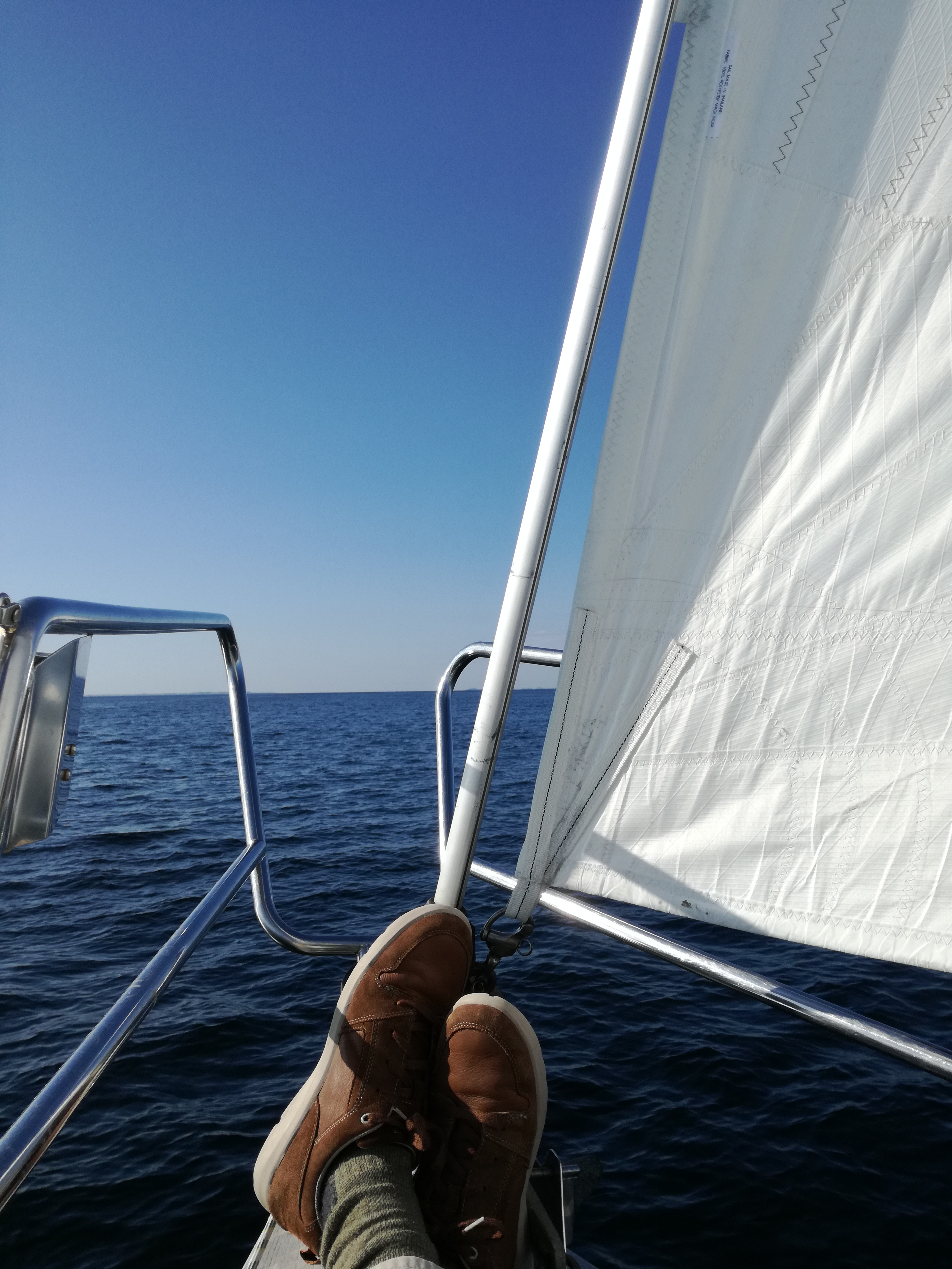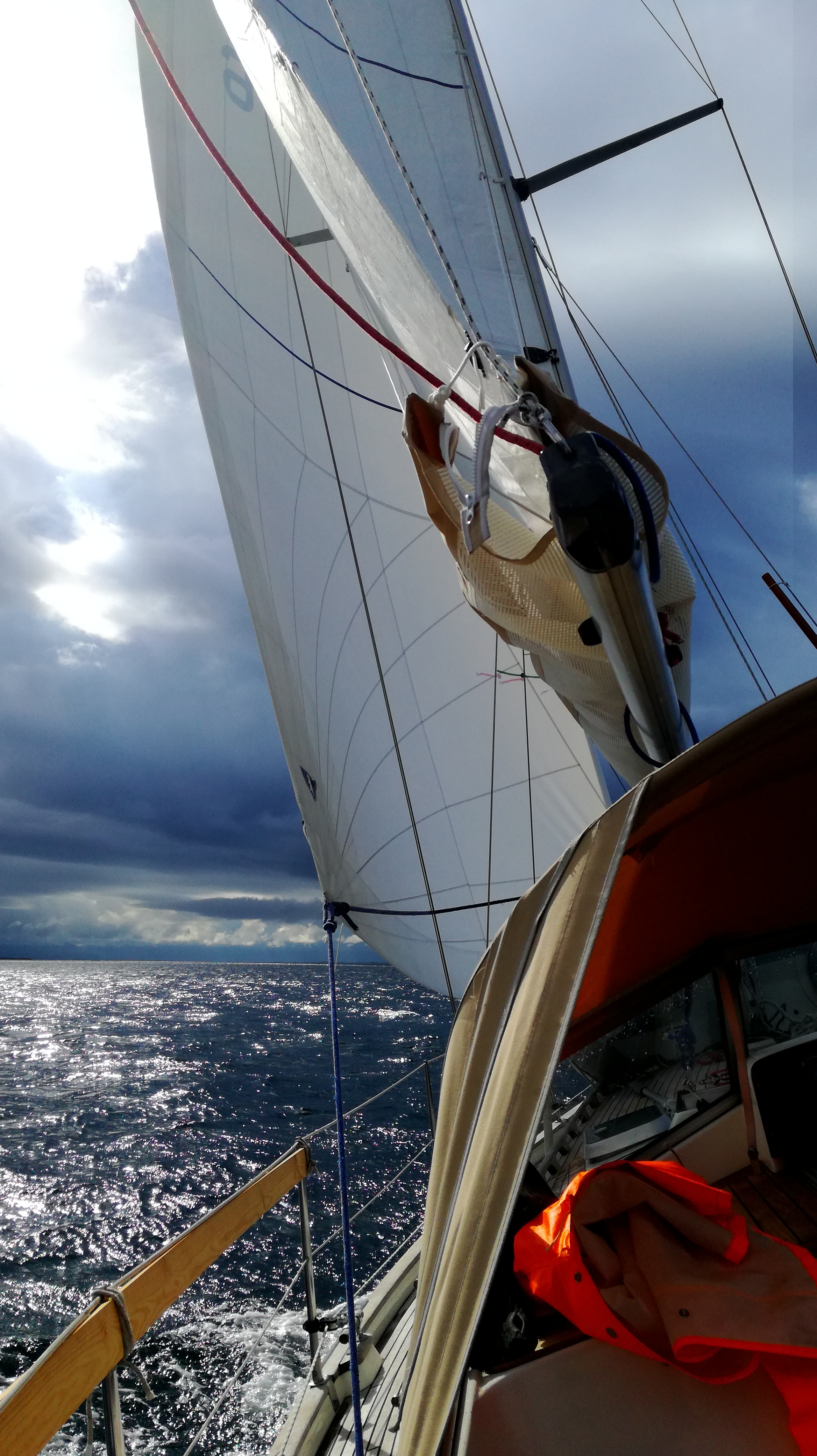 Started from Talgje at 10.00 a.m. NW breeze 10 knots, 15 at around noon. Motoring, with some help from the genoa, as the wind is dead ahead.