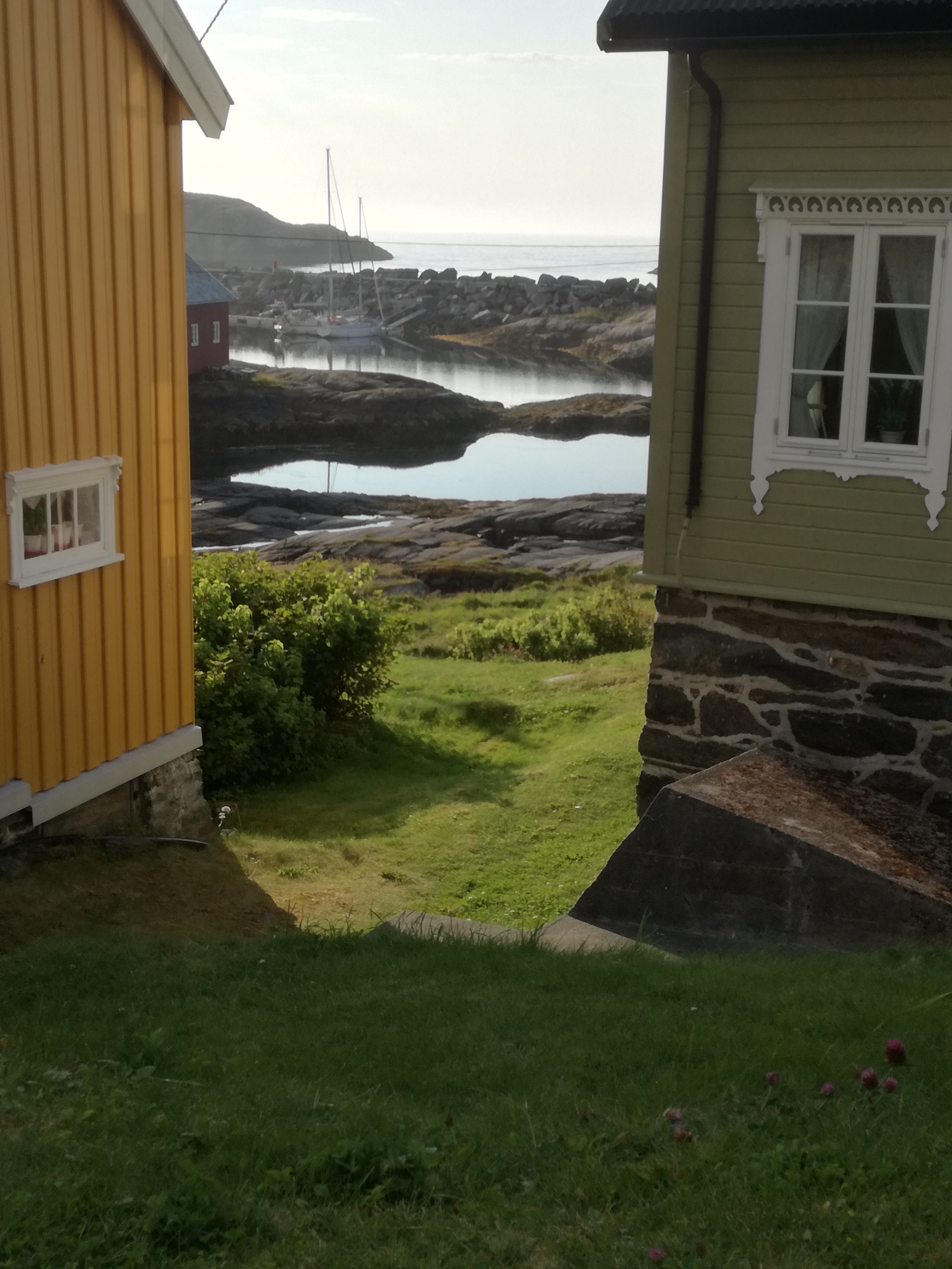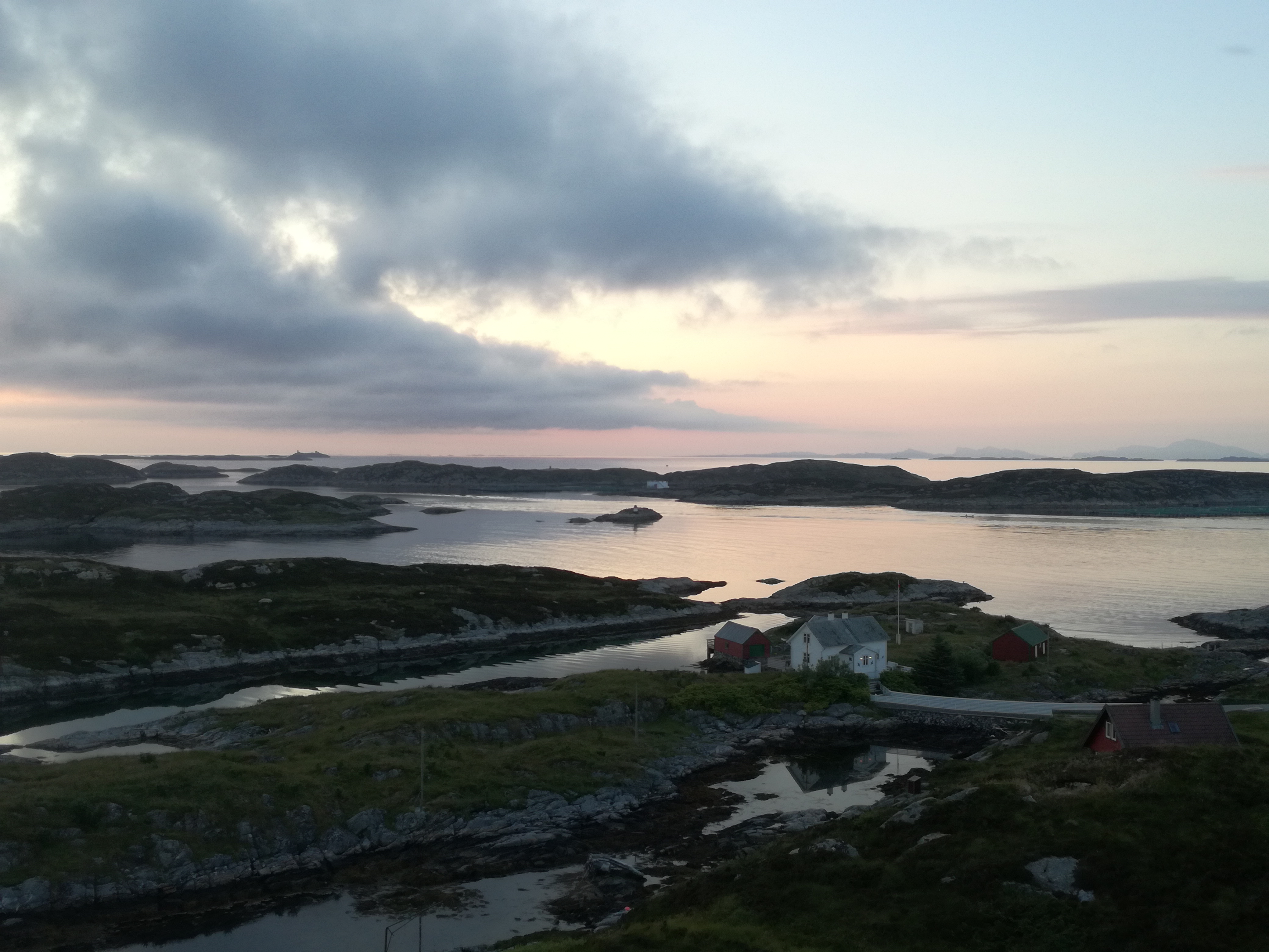 Monday evening. Sitting on the highest point at the little island Skålvær, looking out on a fantastic seascape with hundreds of islands. It’s just something else! Actually, I was on another island not far from here already in August 1979, Austbø, but didn’t see or didn’t understand the uniqueness then. Later, Ellen and I have visited several places along the coast here, and a dream began to take form: to one summer sail among these islands! First I thought it would have to be in a rented boat, but now I am here with Vestavind!