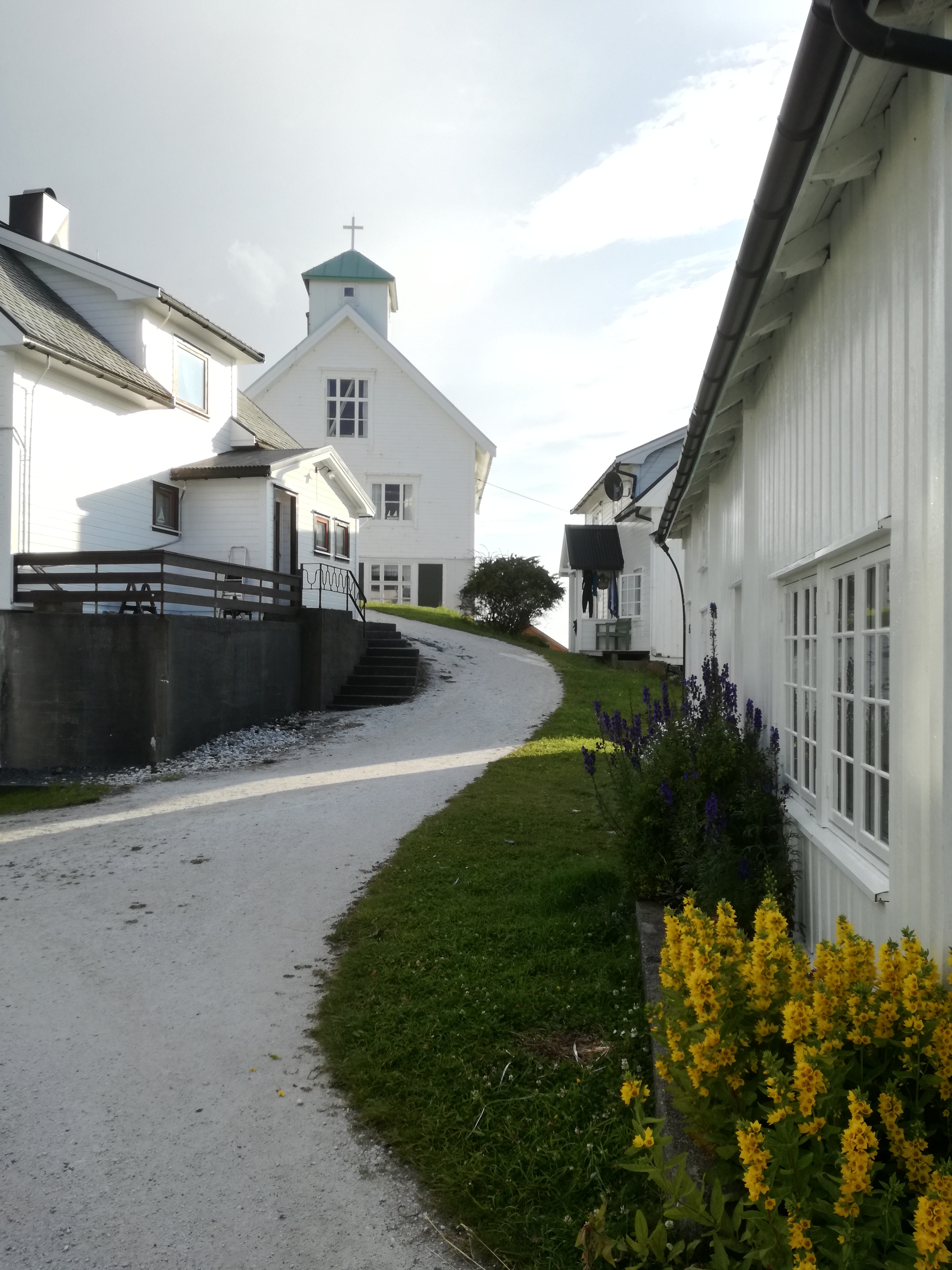 We motored across to Tjøtta, a place well known from Norwegian history from the Viking age and onwards. Otherwise a typical coastal village. I have filled water and have gone shopping, and visited the stone church from the 19th century. Close by is a research station for biology. Mainland Helgeland is a good farming area, as Tjøtta exemplifies. The place is also a communication hub.