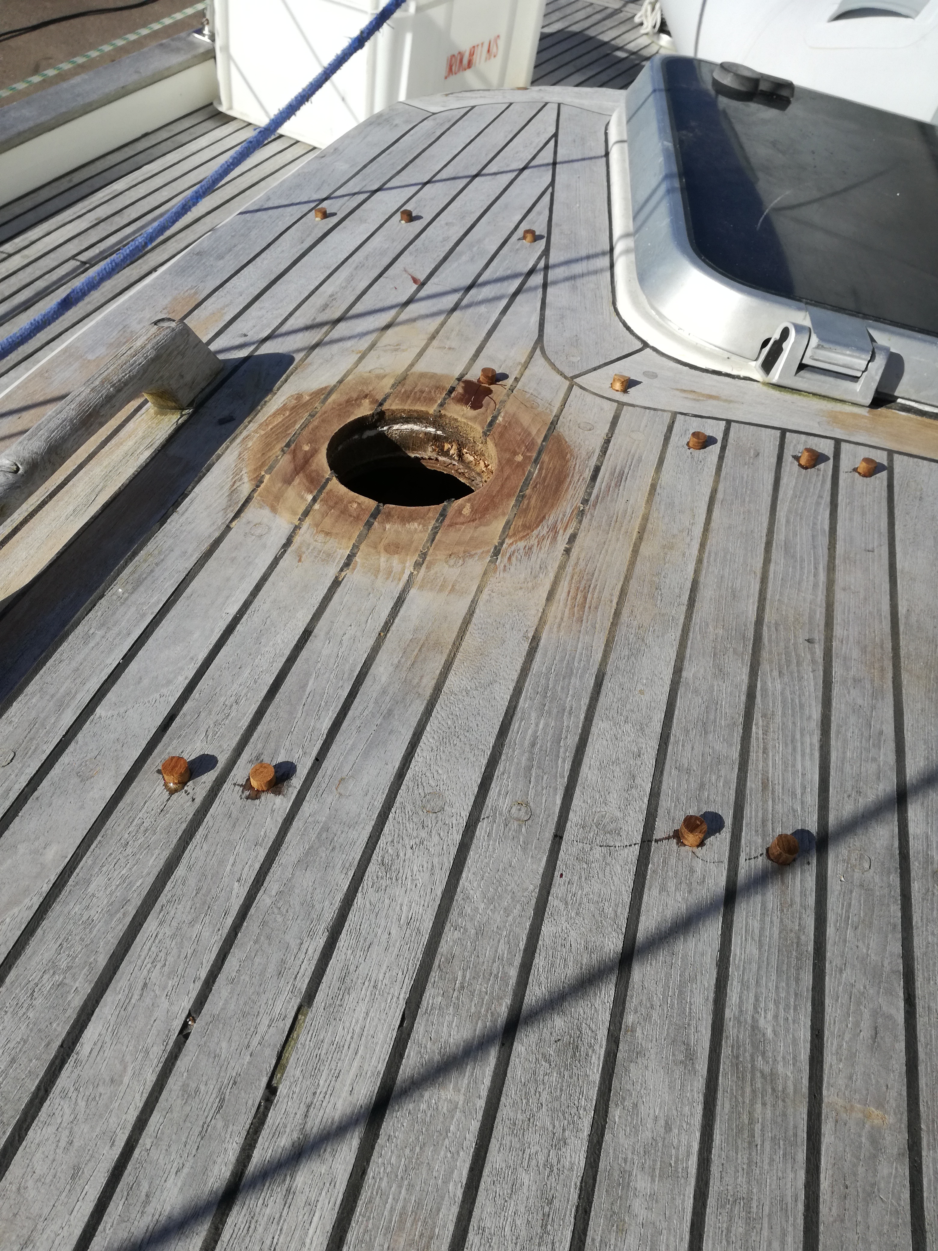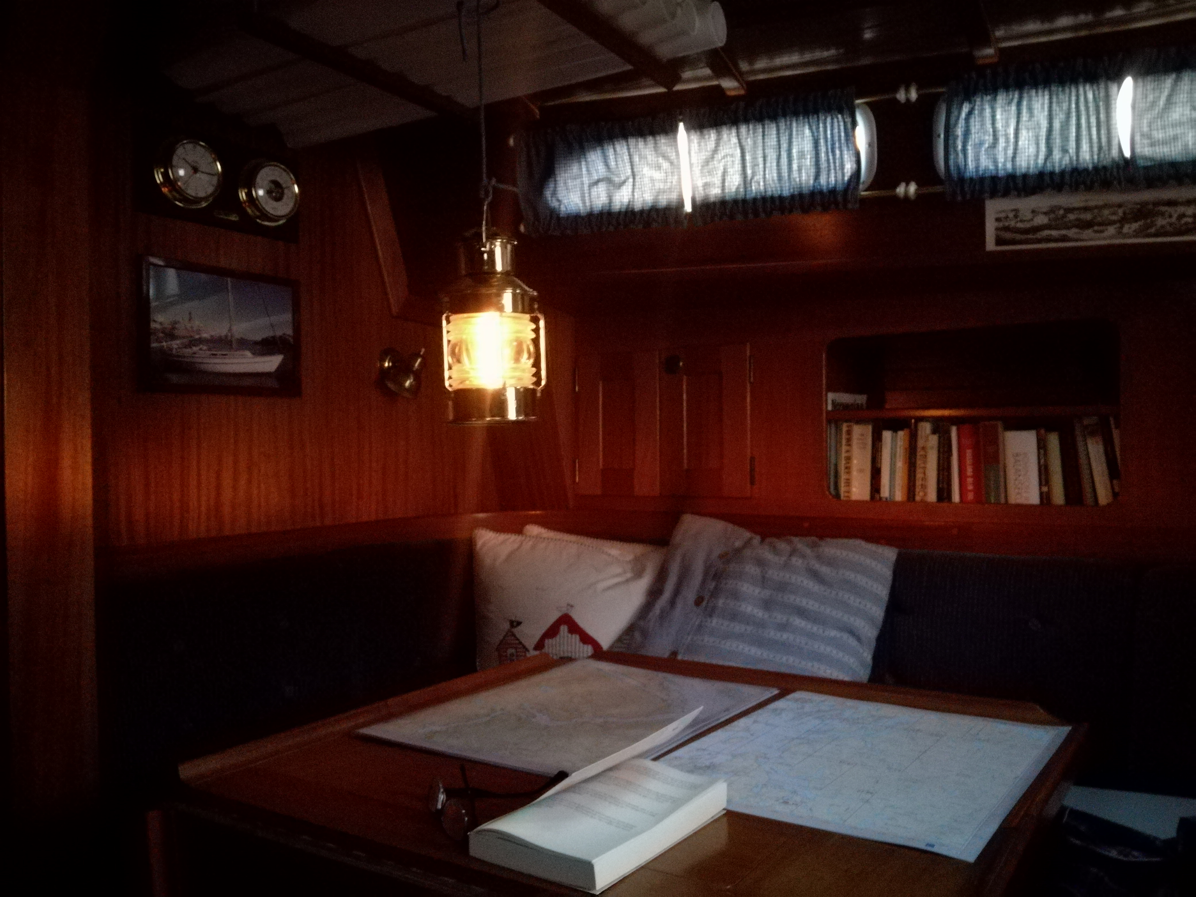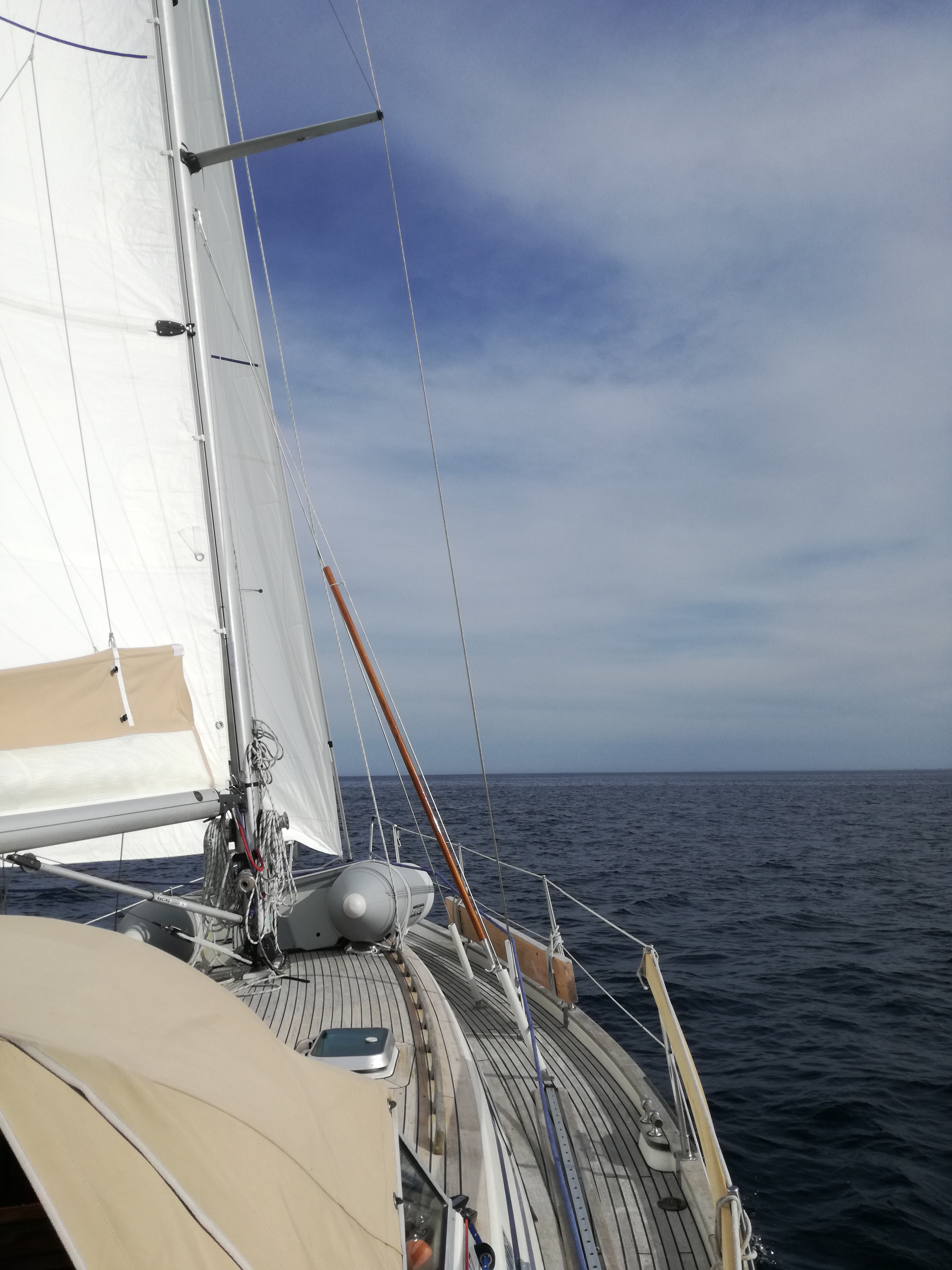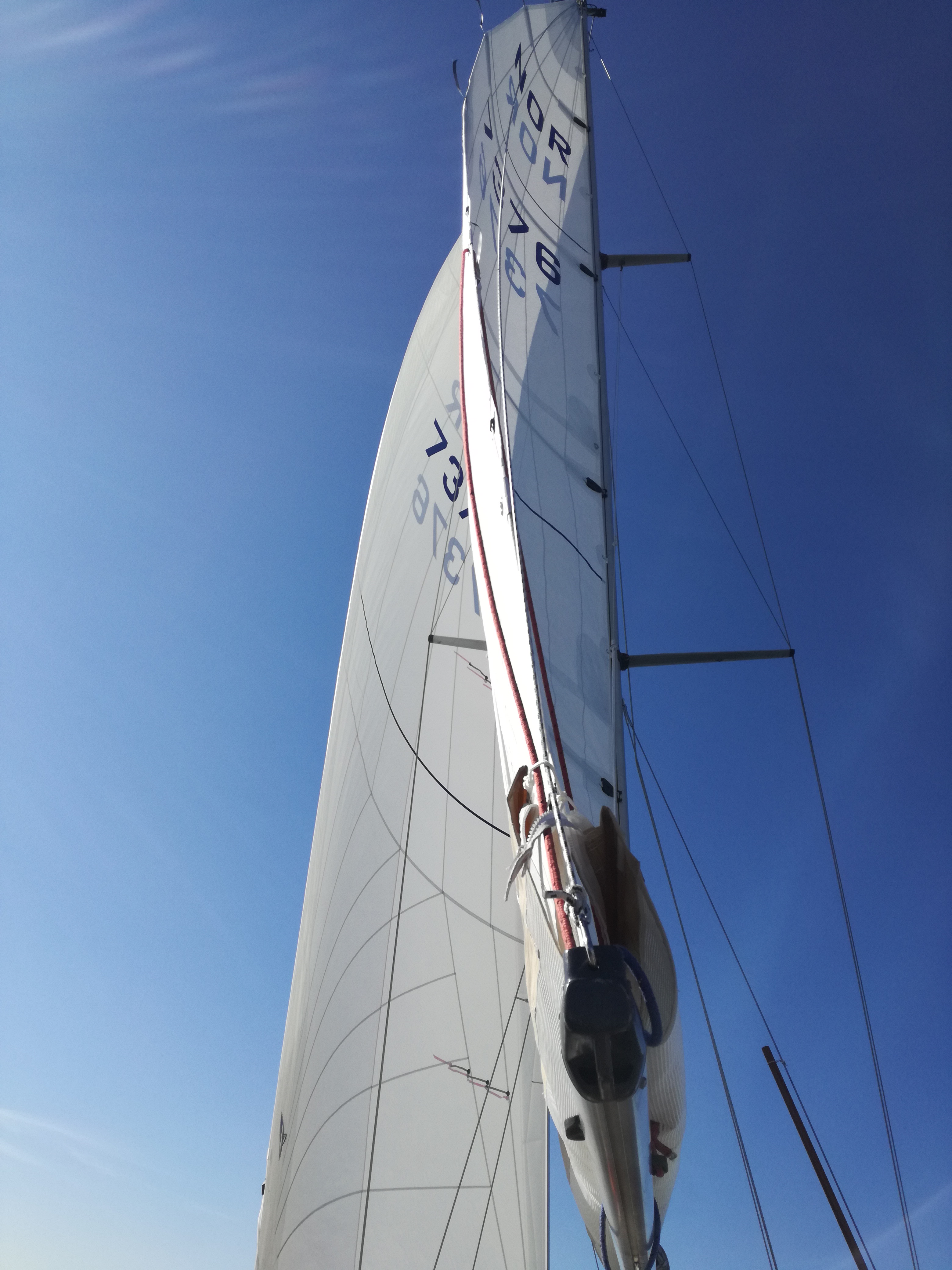 With the right sail trim this boat steers herself. The new sails from Gran (granseil.no) have made the sailing a much better experience than it would have been with the old sails. The laminated cloth, together with the fully battened main and triradial cut, make the sails easy to trim and forgiving to the crew. Vestavind points higher and sails faster with less wind.