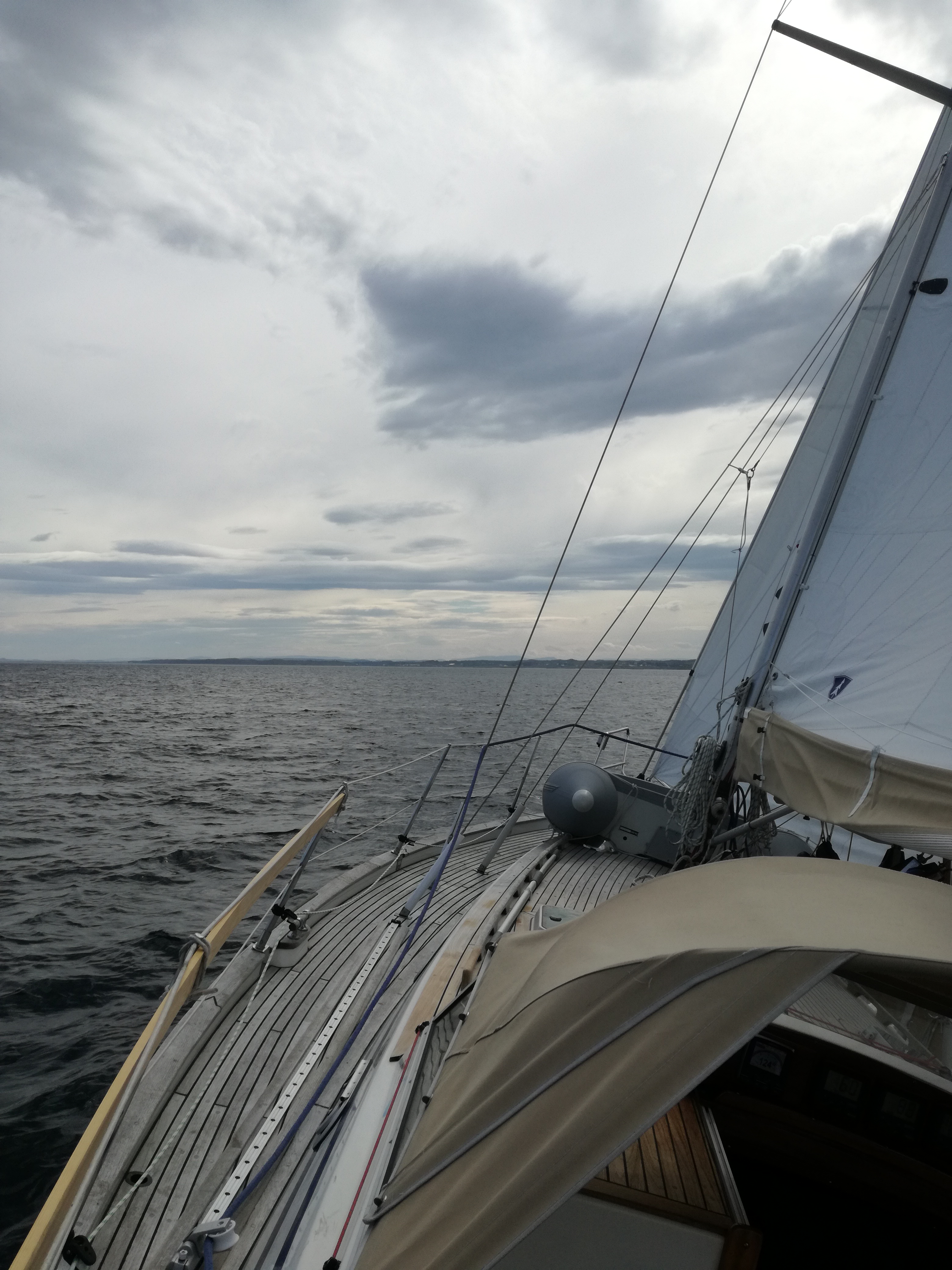 First leg over for my part. I bade farewell to Vegard and Stein Helge, and Vestavind, who left at 6.30 to sail around Stadt today. The forecast is S to SW stiff breeze to the low end of a gale. Wishing them fair winds!