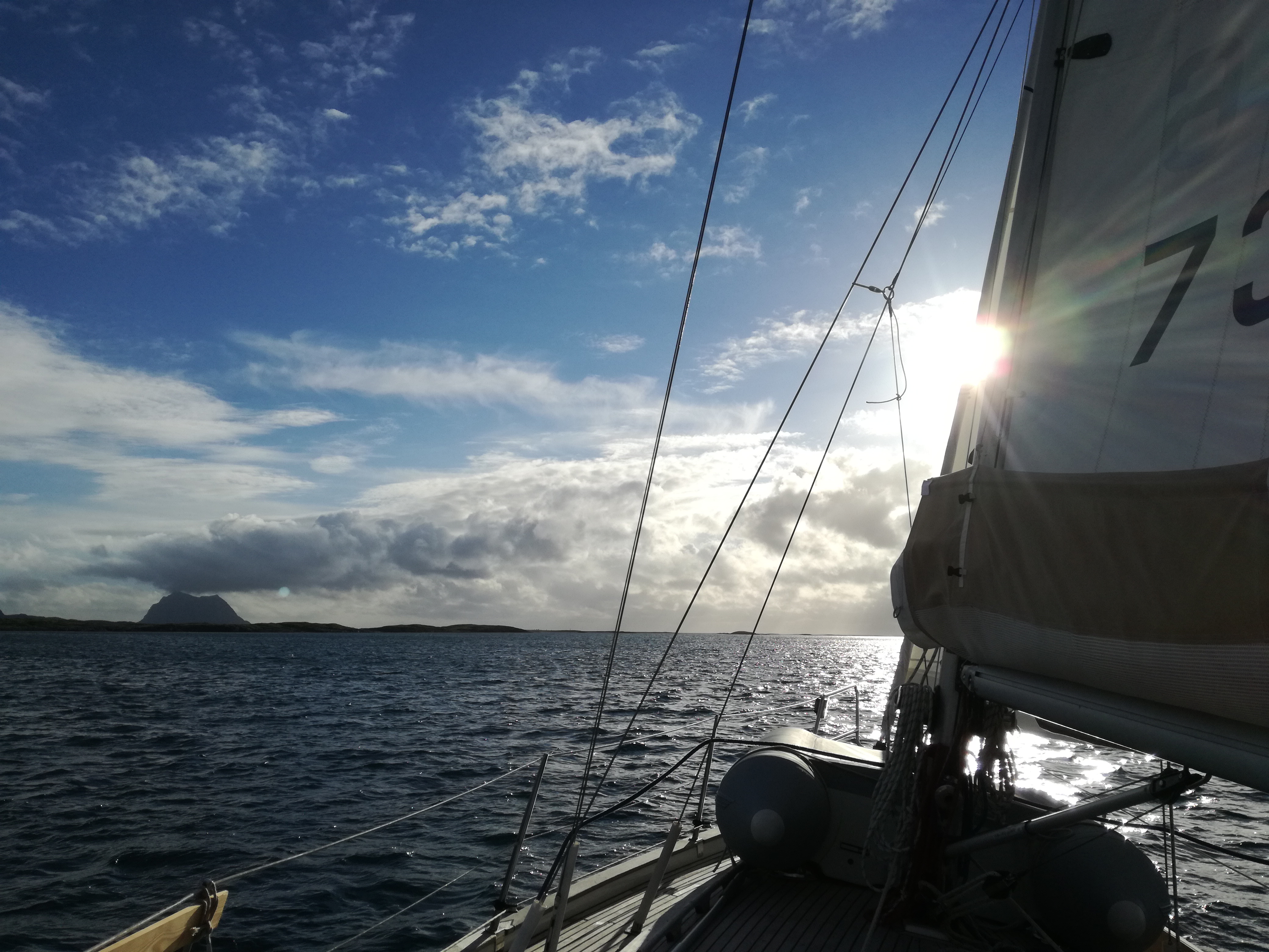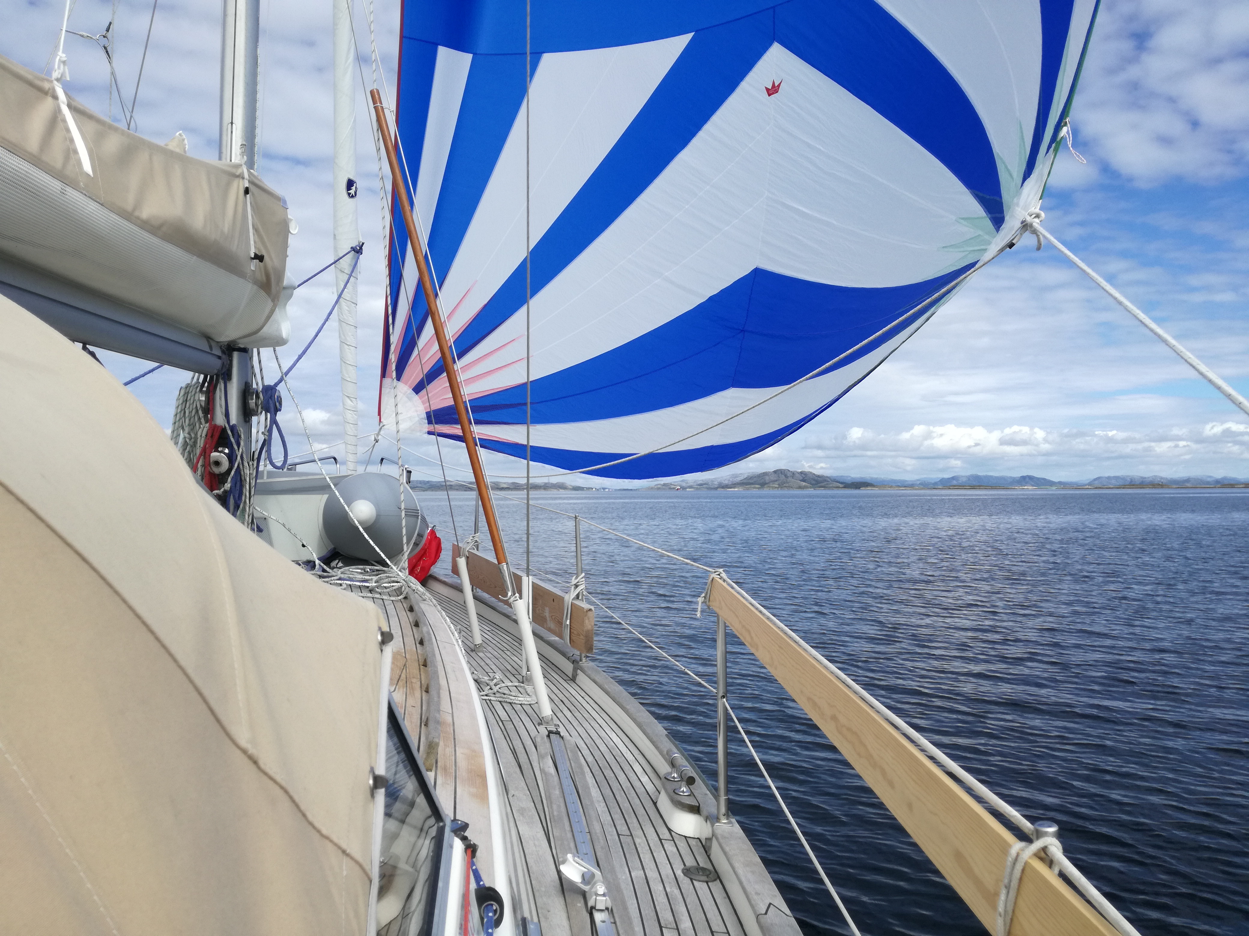 We were going north east towards Rørvik. When we were on course, a very light breeze came up from west, and by Gjeslingan light house we hoisted the gennaker. It worked perfectly, and we sailed in almost complete silence for two hours.