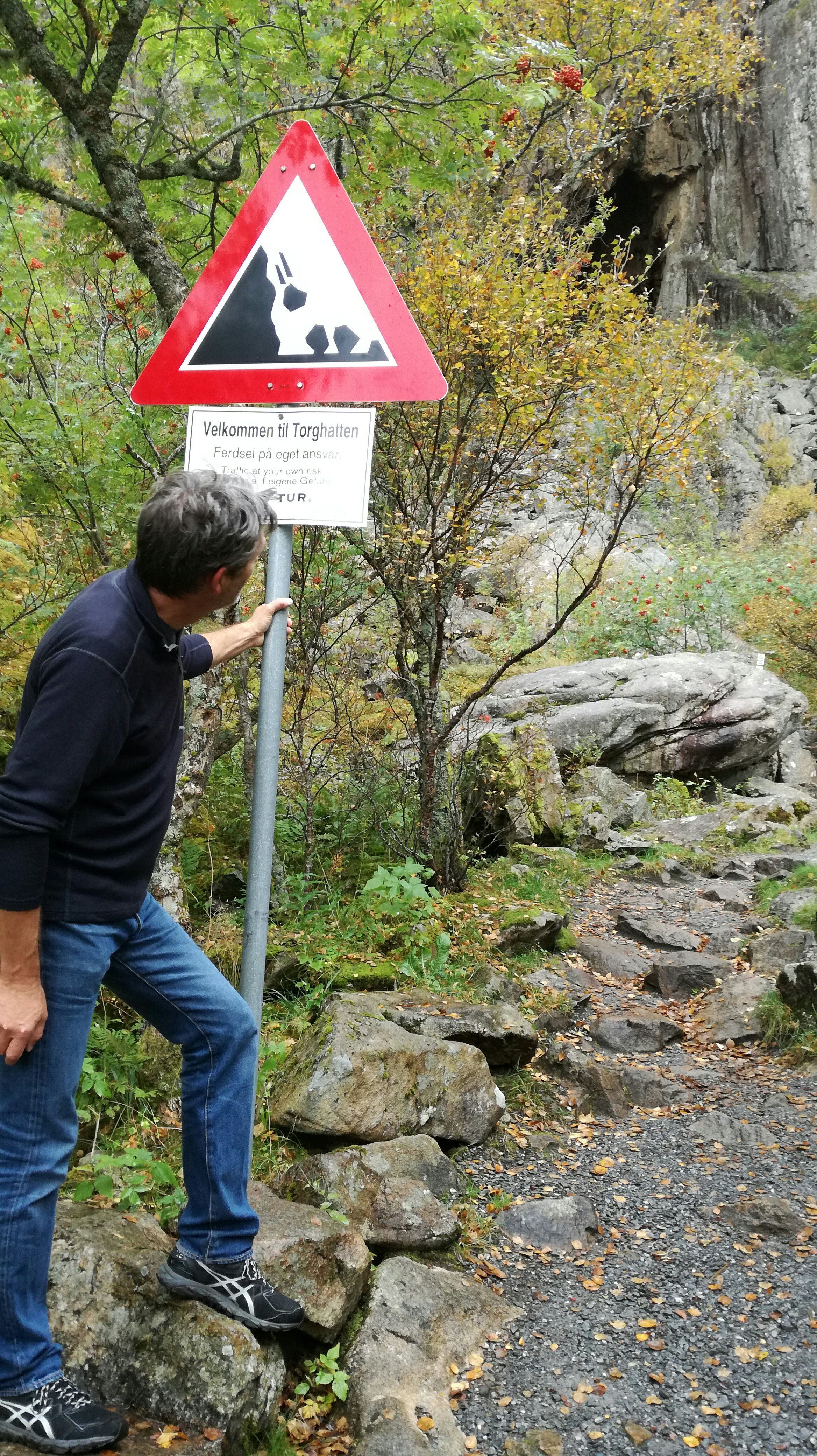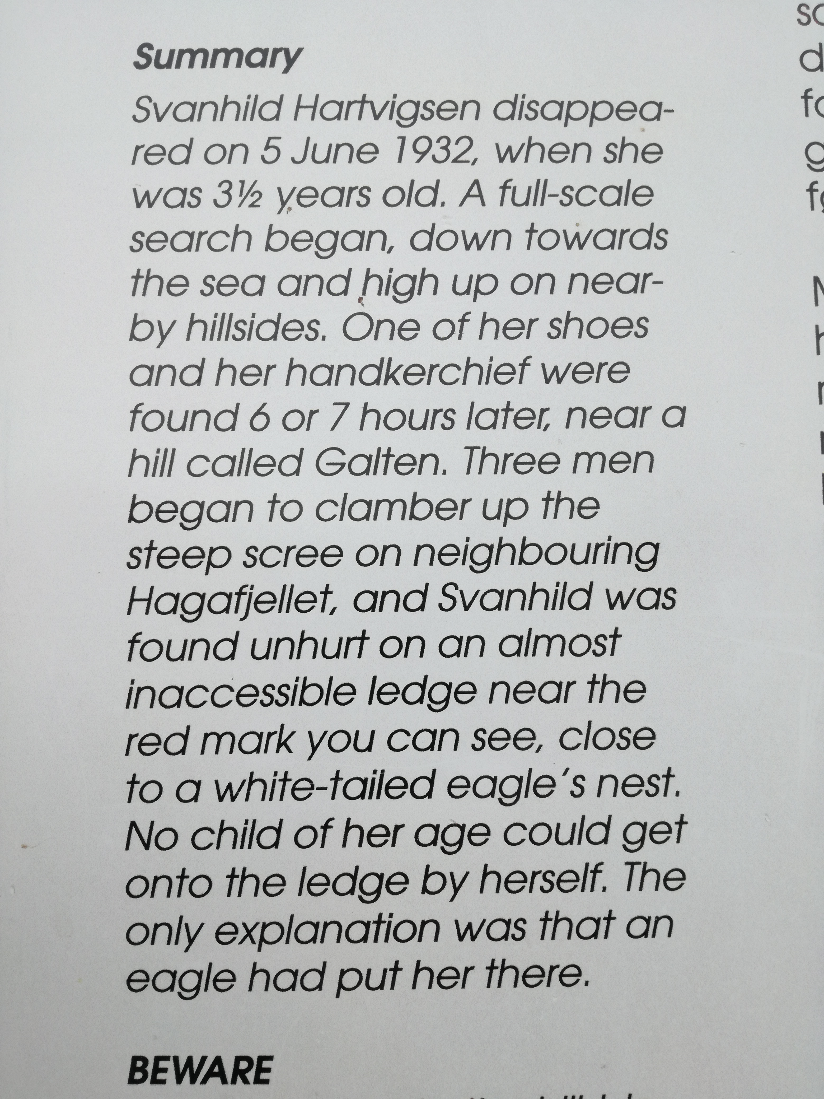 Next morning was overcast, threatening rain, but we set off on foot and reached Torghatten after an hour. A magnificent, natural miracle! The hole is 160 meters long and some 20 meters high, and what acoustics! Like a big cathedral. And as it was Sunday morning, and we were alone (almost) a hymn by the local, 17th century poet and pastor Petter Dass was a natural choice!