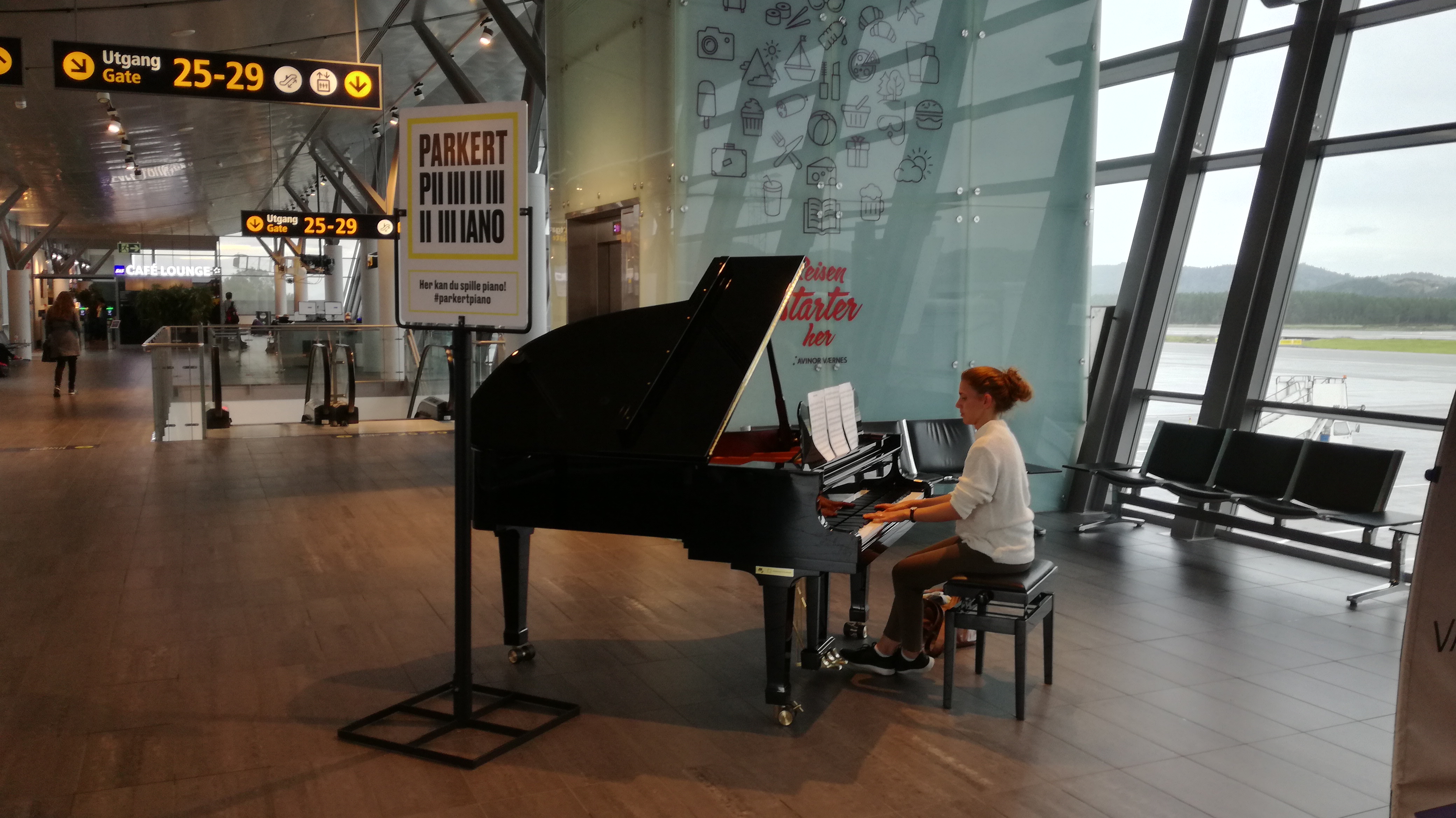 I flew from Brønnøysund, stopping at Trondheim airport to change flights. What a pleasant surprise and a nice end to a very good holiday to have live piano music in the departure hall!