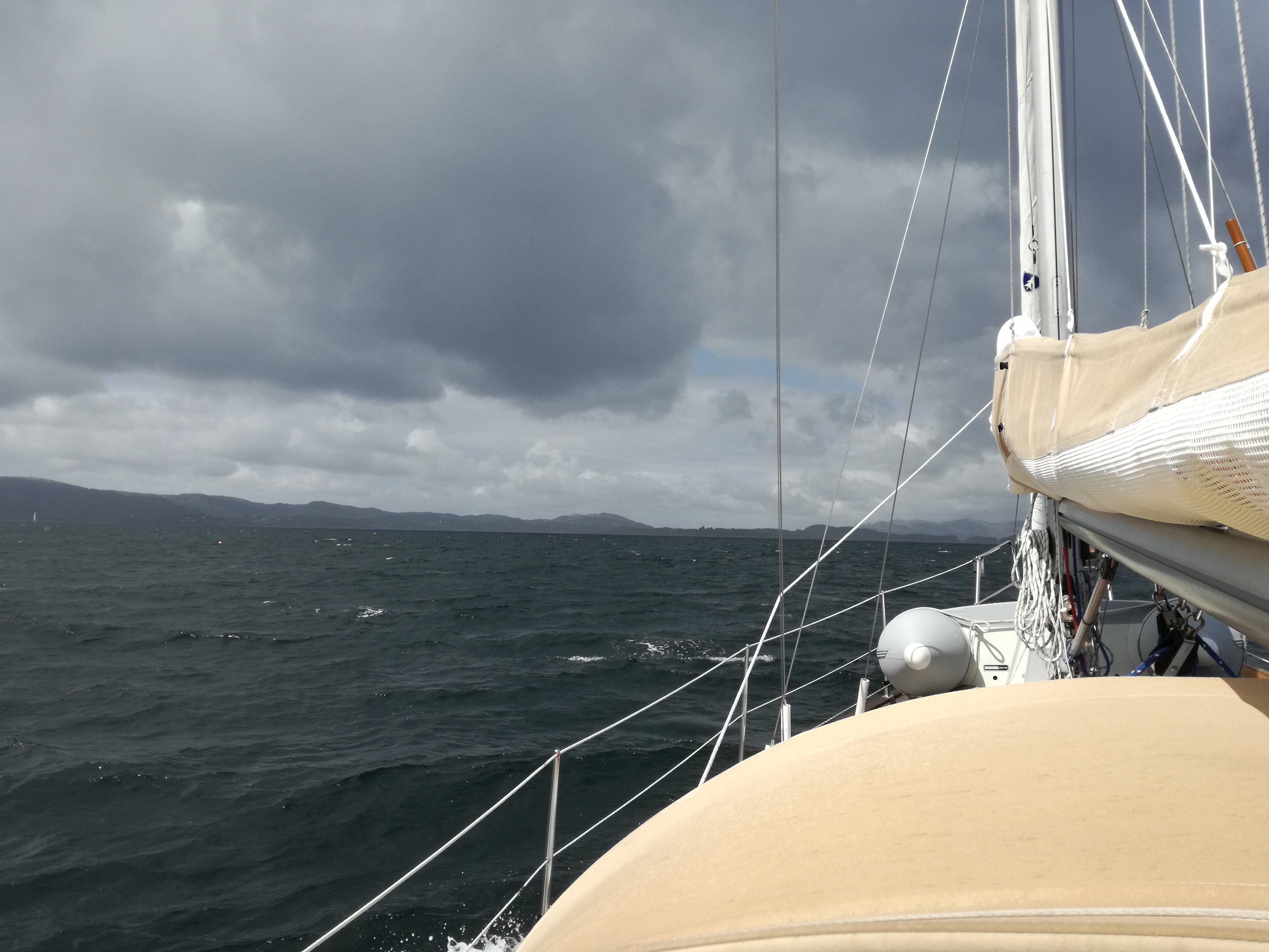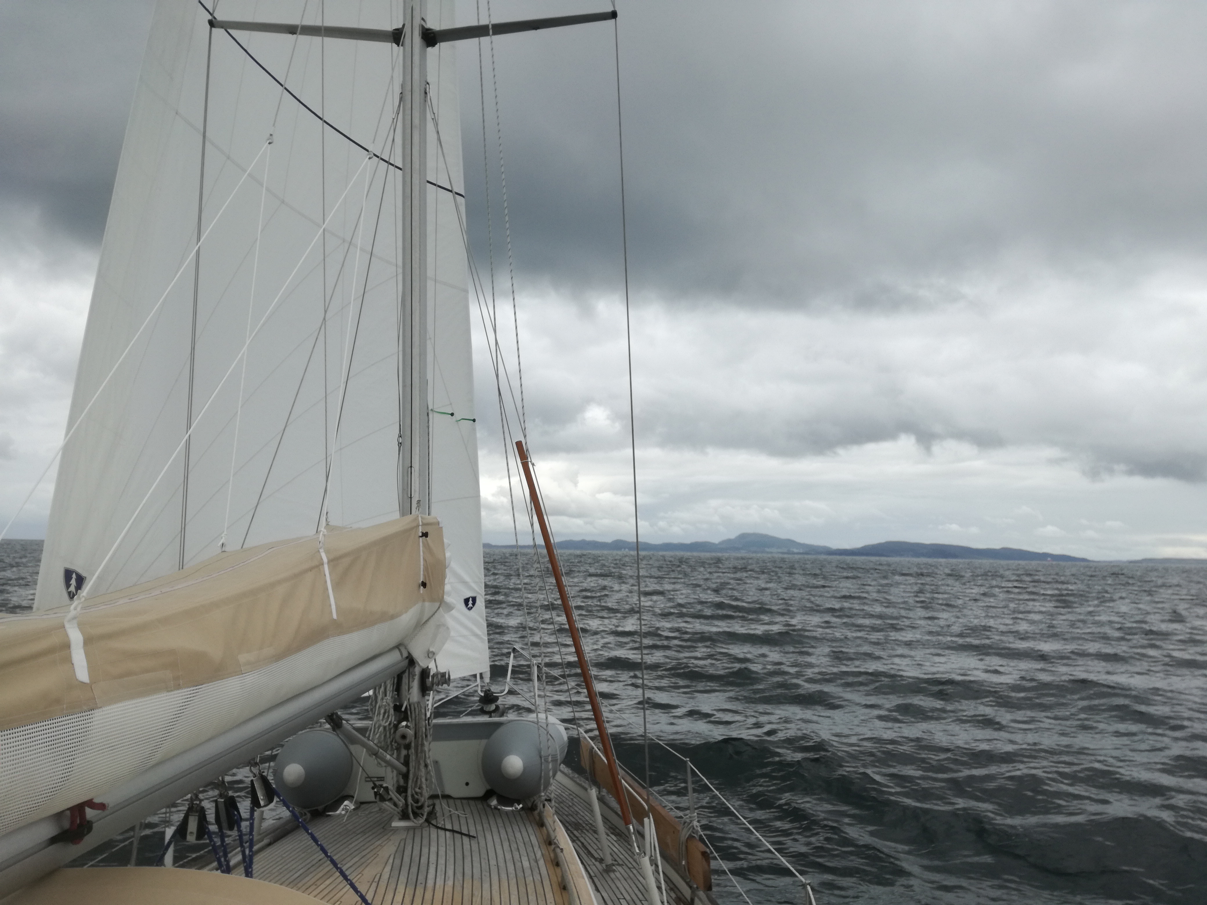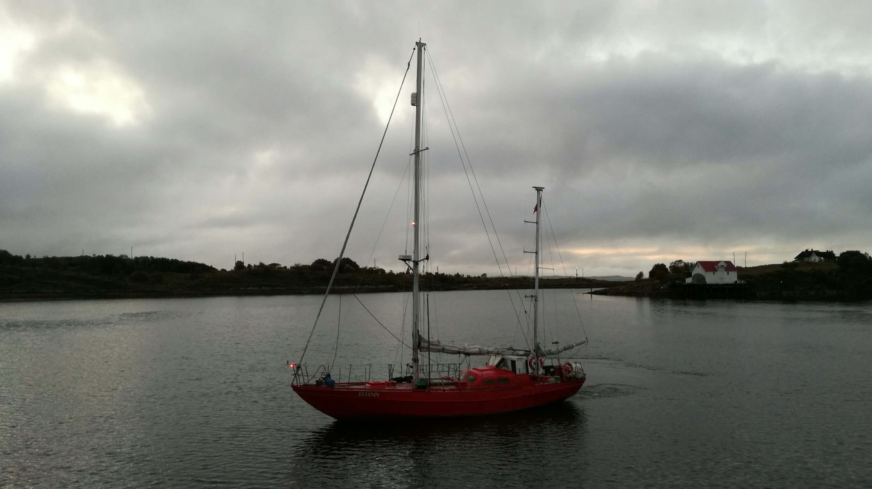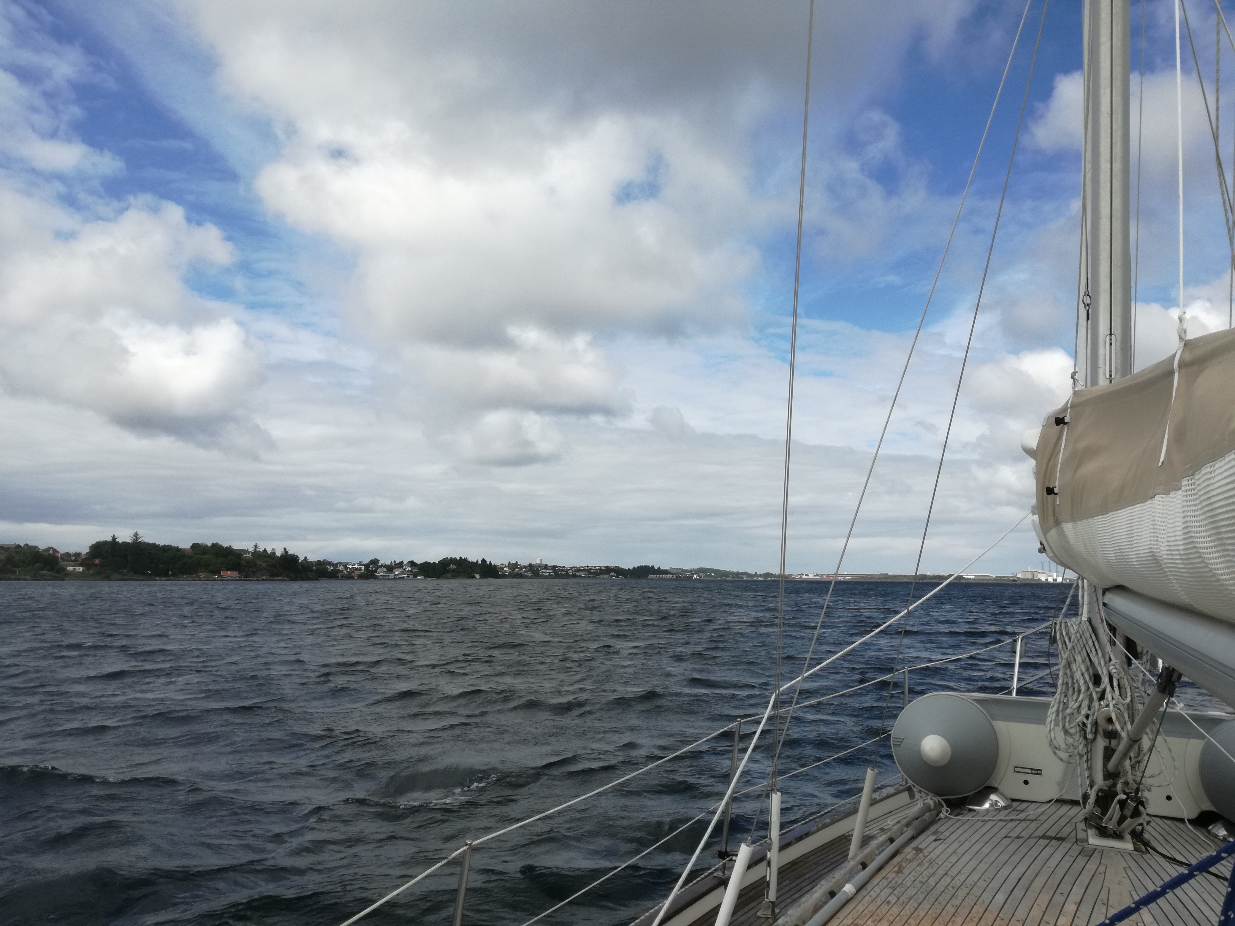 Out of Haugesund early at 05.45. Grey, wet morning, but the wind was good. SE 10-12 knots. The boat made 5-7 knots all the way.