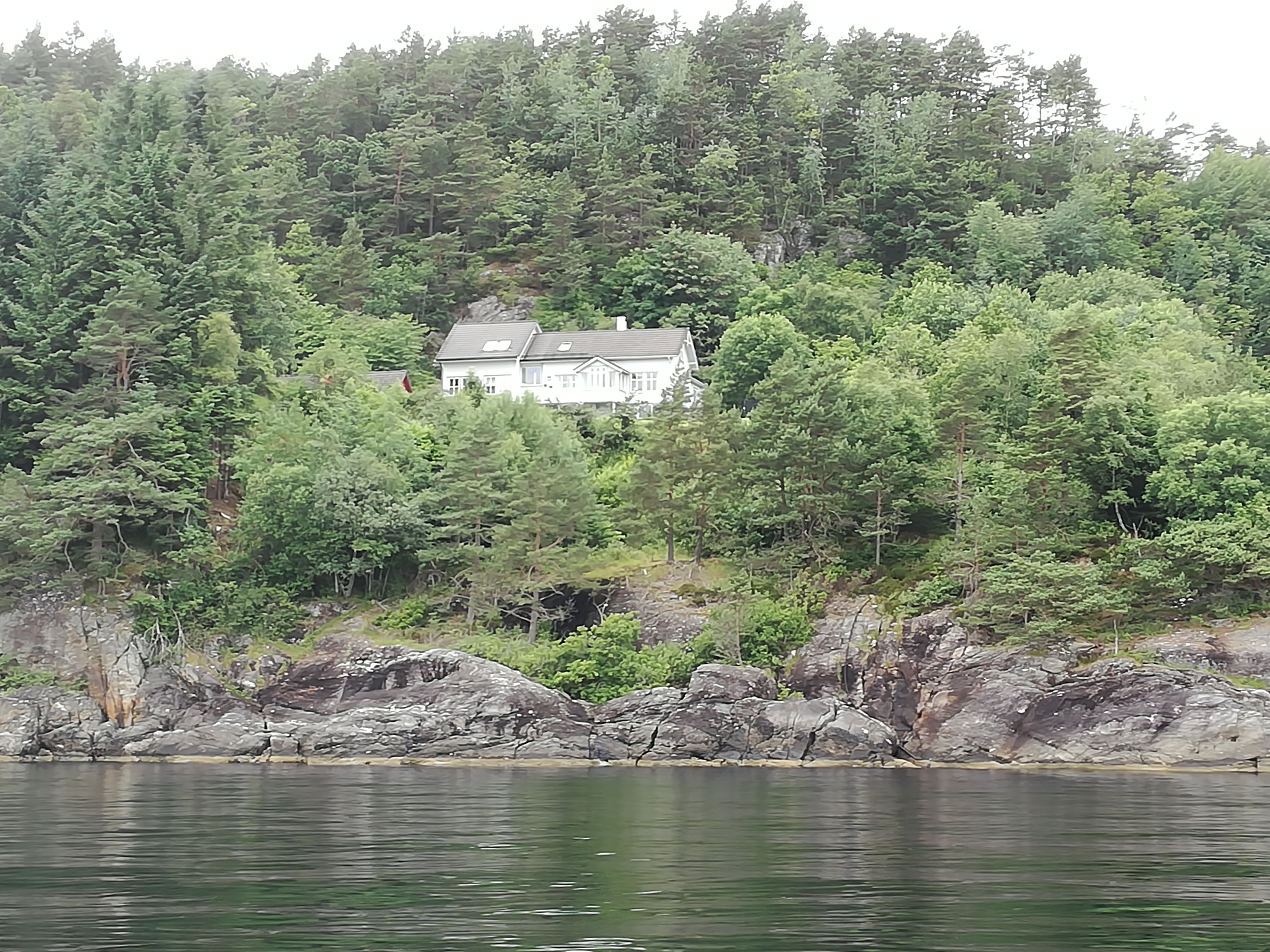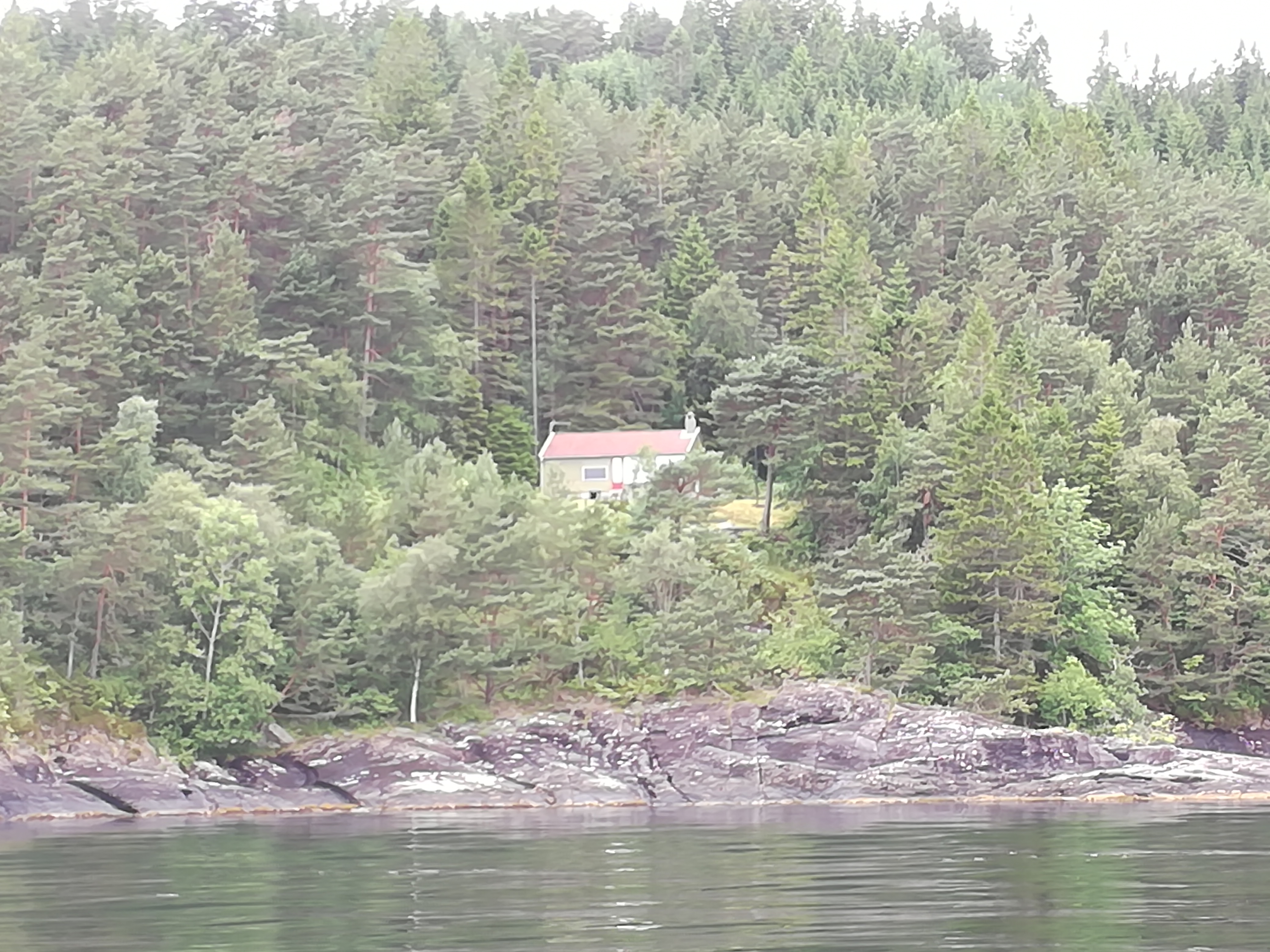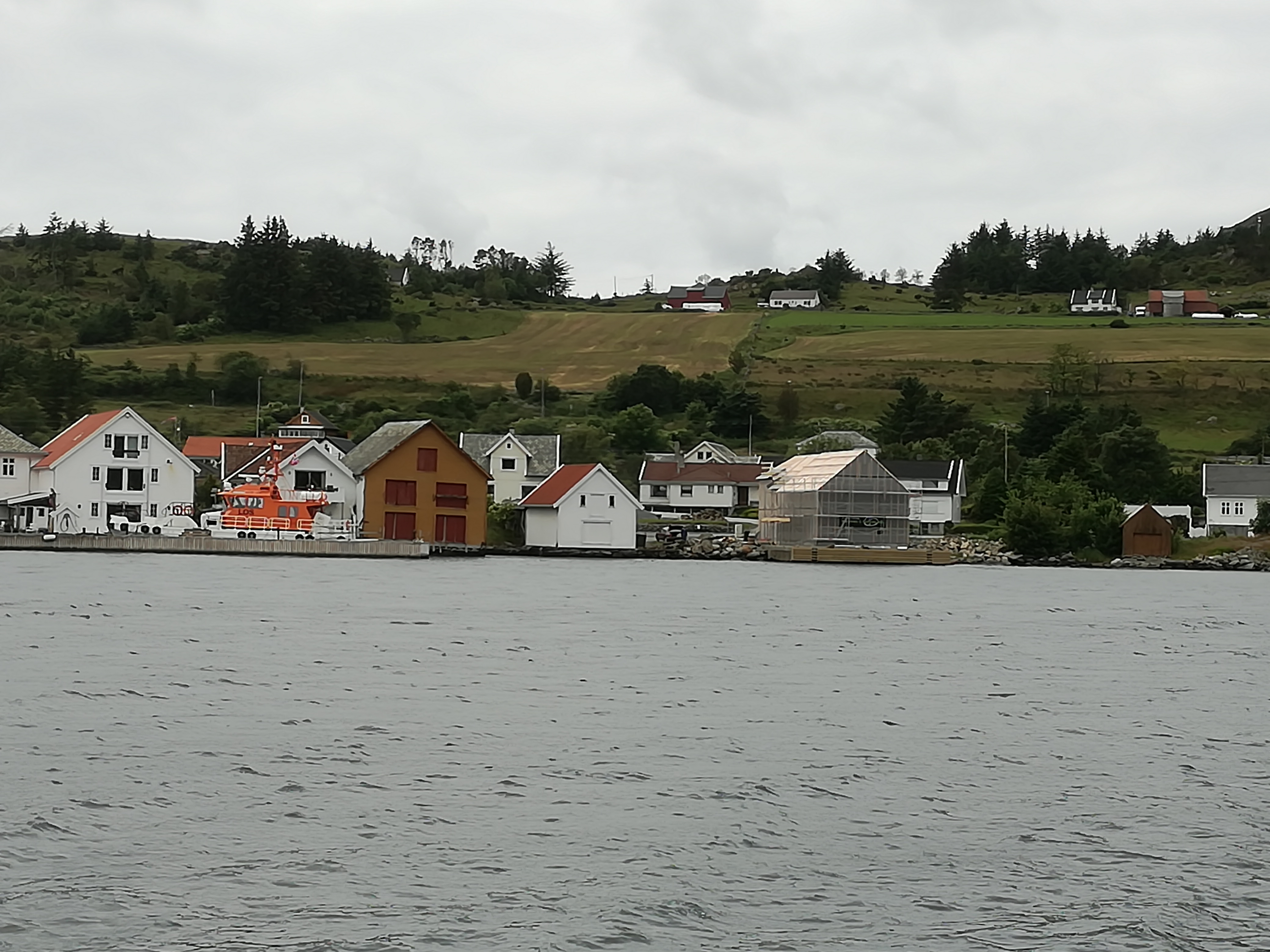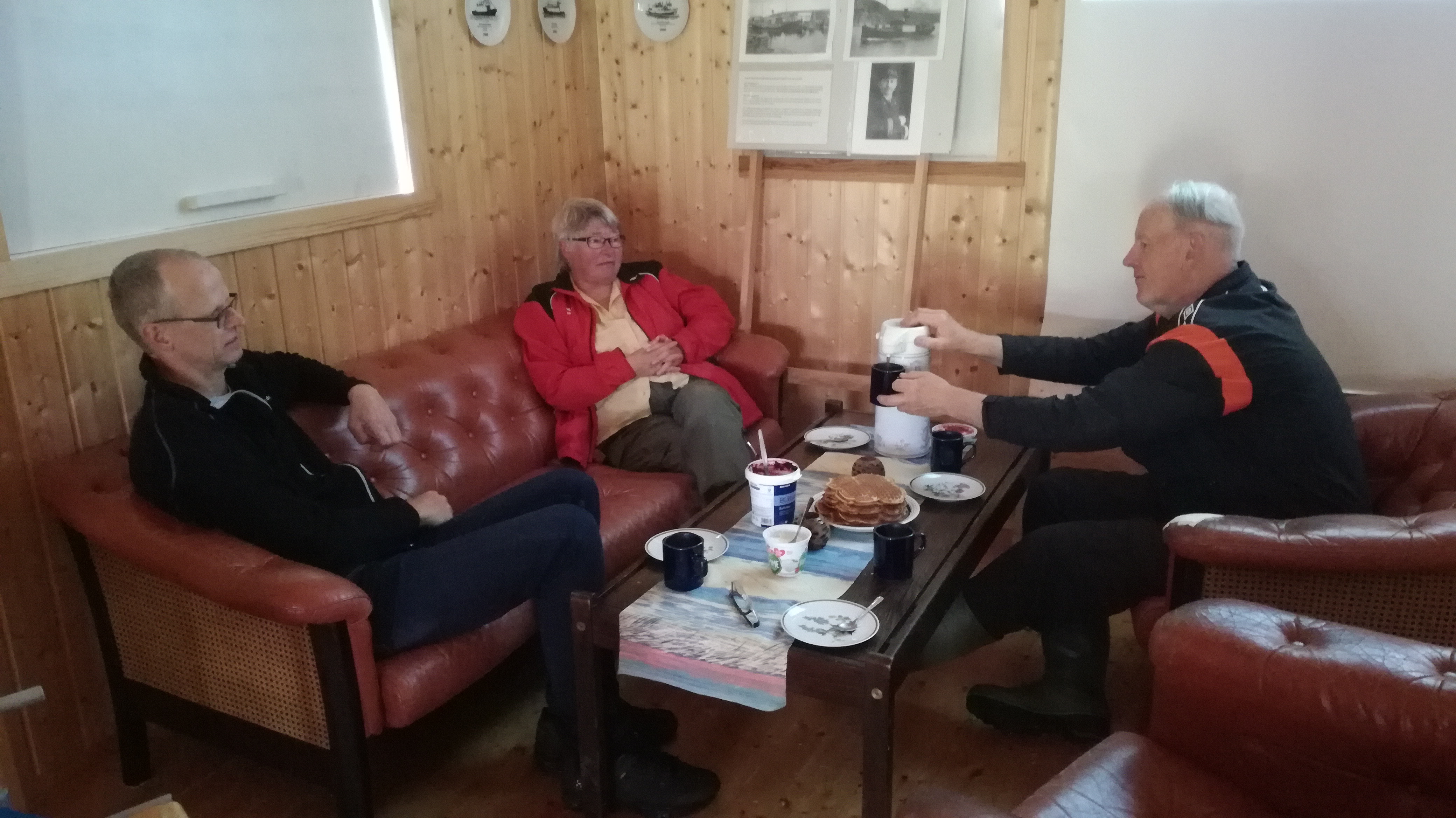 The first rainy day since before Bergen! I was invited by Gunhild and Nils, together with Kjartan, who also has a house here, for coffee and waffles, and to watch an animation of the community here as it looked like around 1900. Nils has collected a huge amount of information from historic documents, learned CAD drawing, and with the help of an architect company made an impressive presentation of the islands and the community. He estimates that he has spent around 3000 hours on the project over the last four to five years! The animation will appear on their website in a few months. Thank you for an informative and entertaining morning!