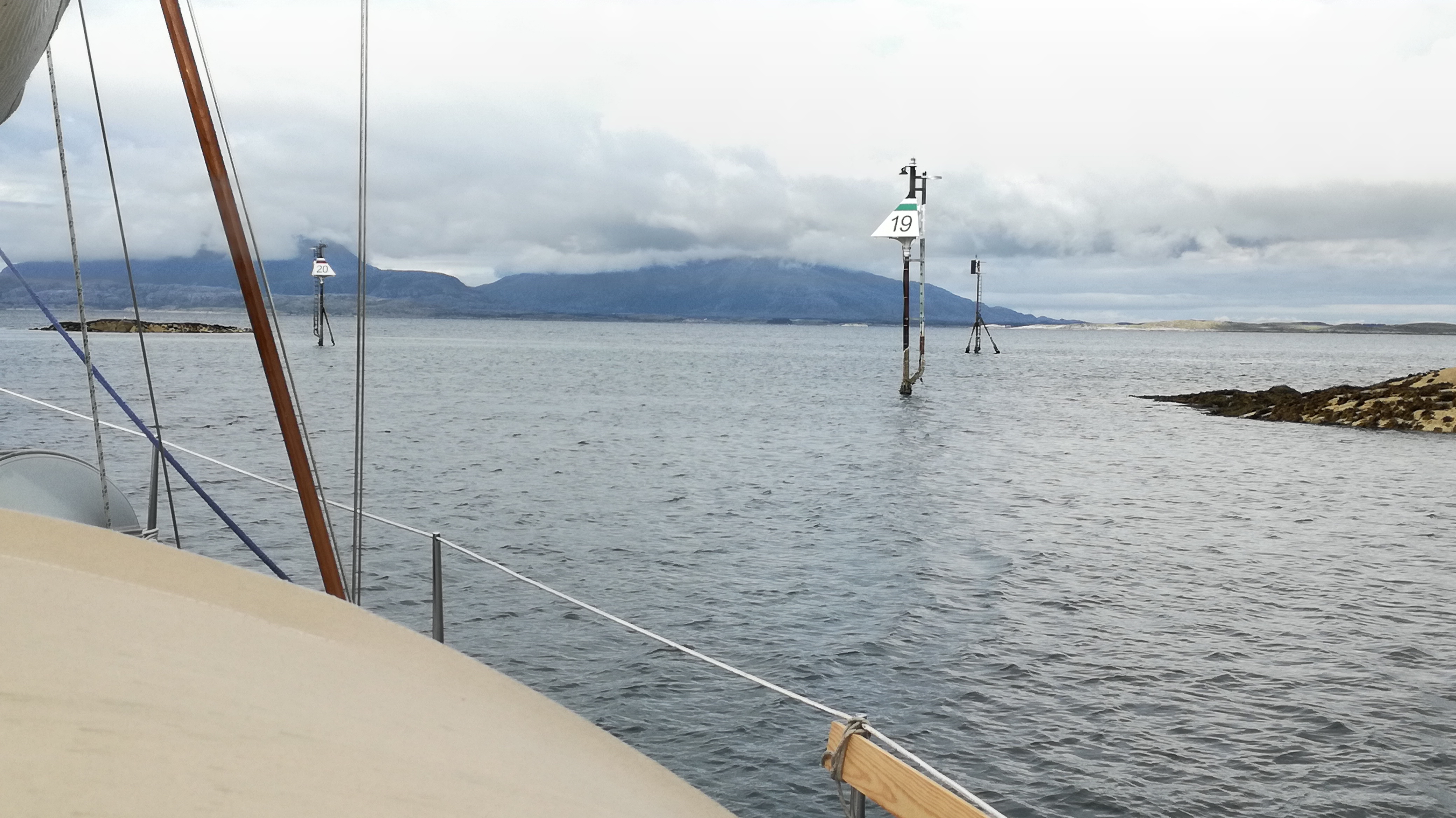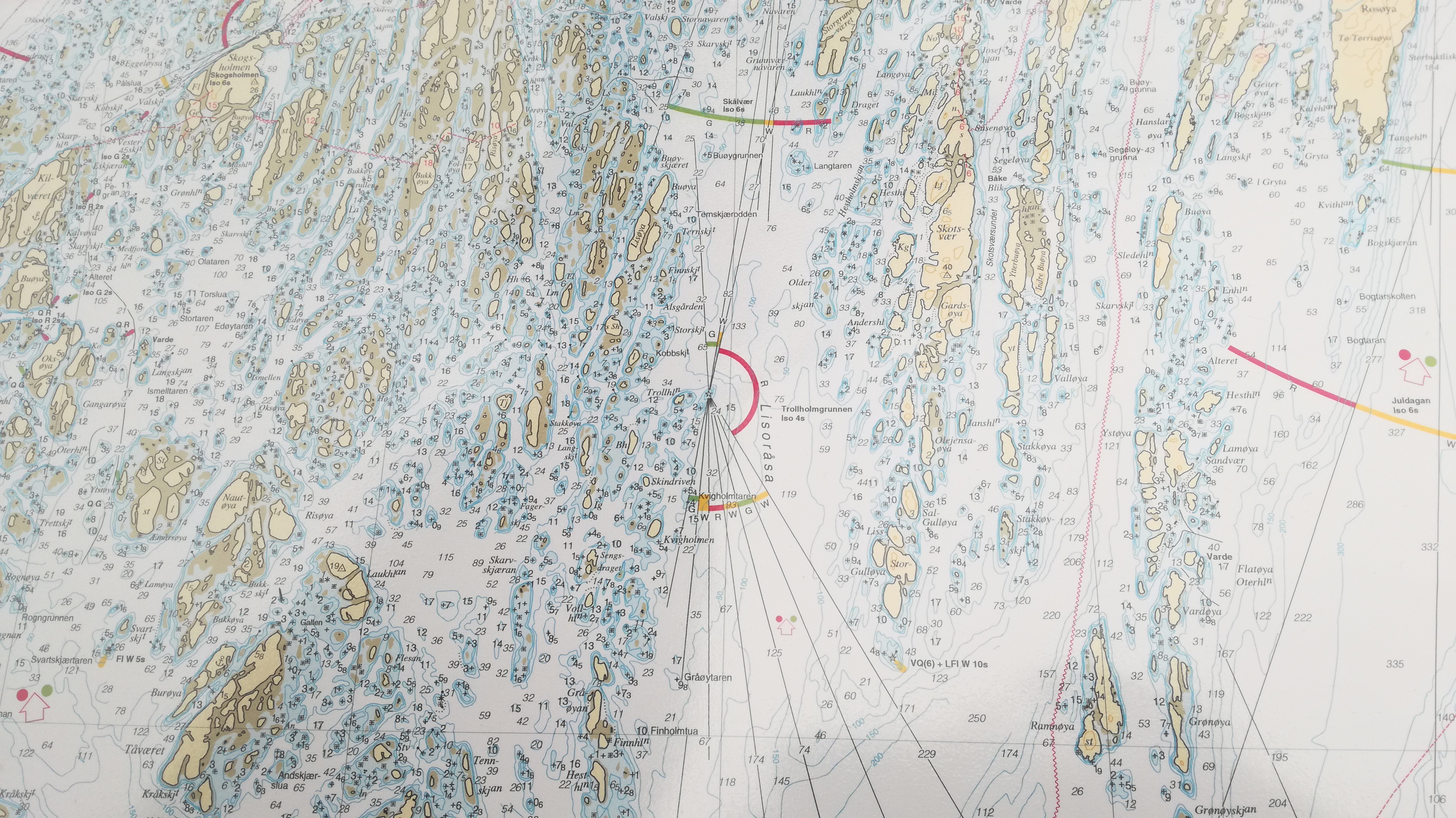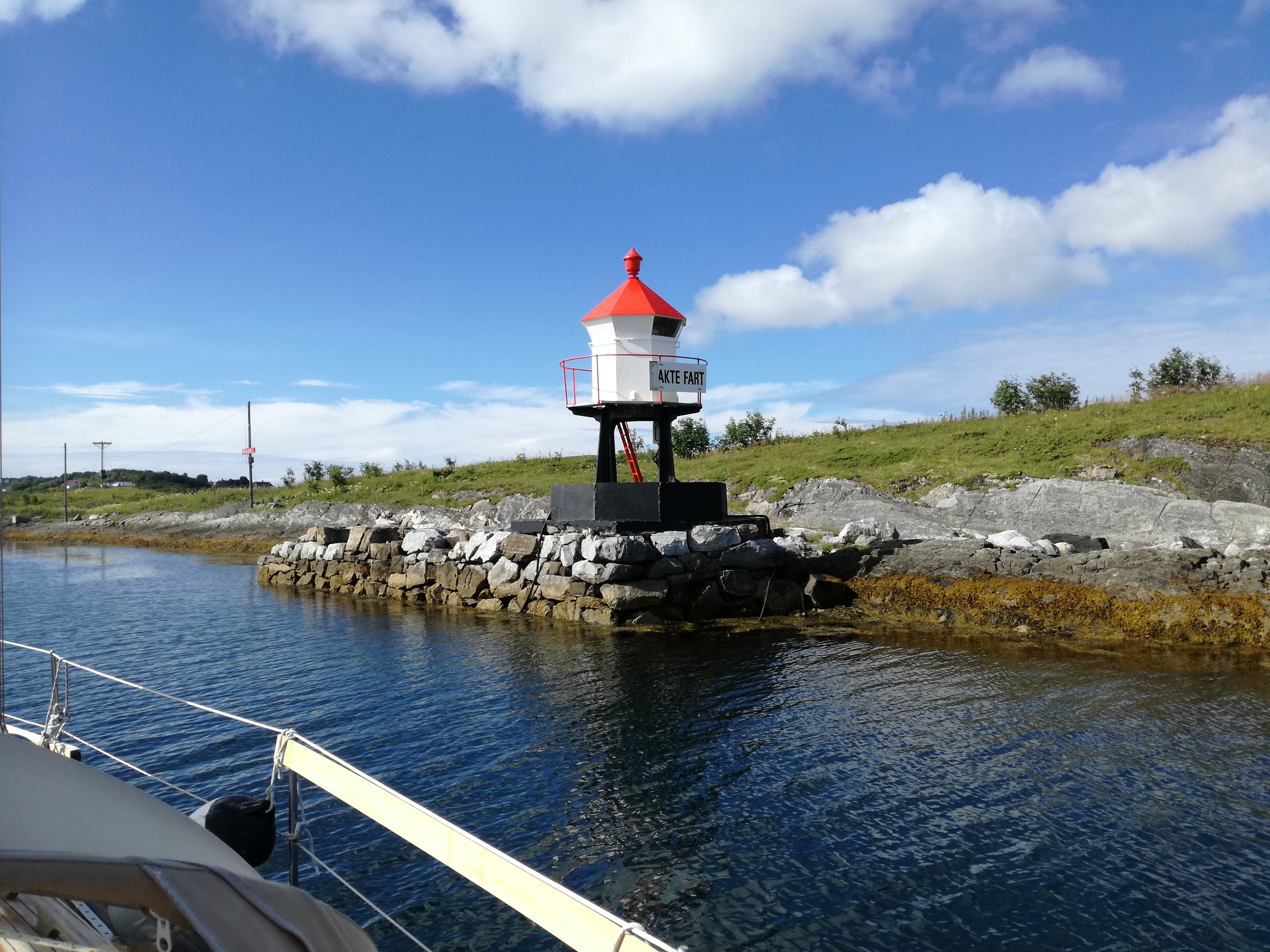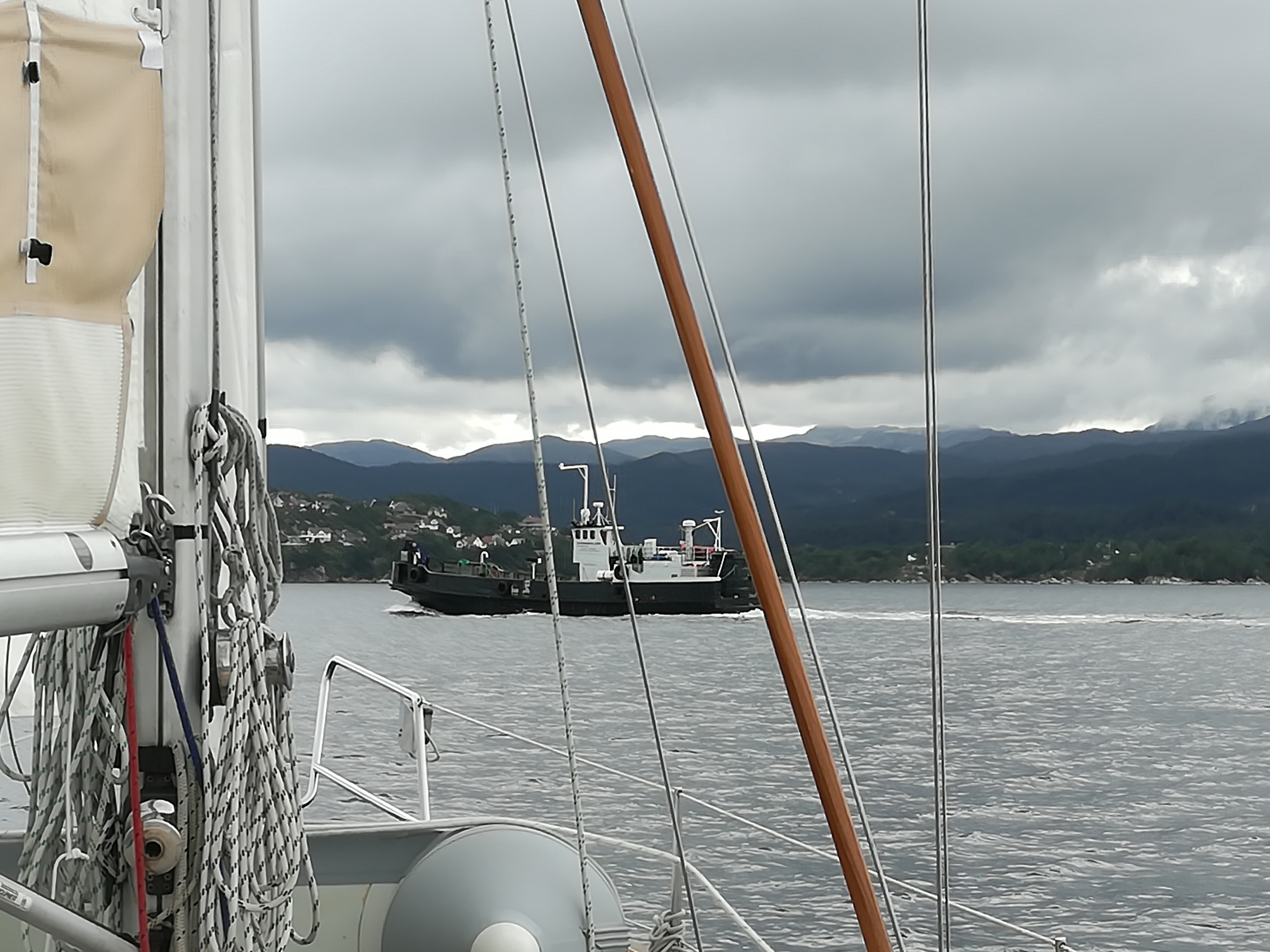 We left Veiholmen early, at 06.30, through a narrow channel to the north east. It is well marked, as are all the common and less common seaways along the coast. Having an old skipper on board has been very interesting and helpful, and good company. I learn a lot about coastal navigation. And hear many stories from his almost 65 years at sea. He started with his father when he was 15 with local traffic along the west coast of Norway, and took part in herring fisheries north of Iceland when he was 18.