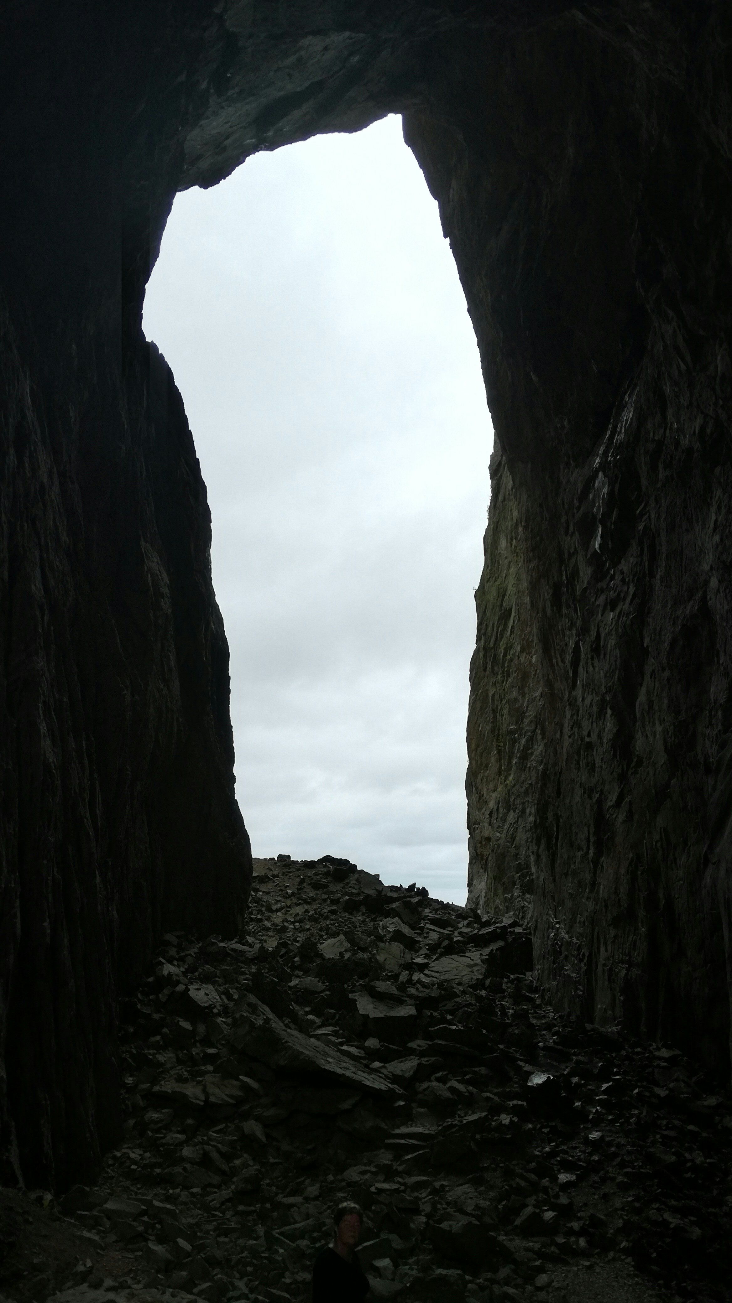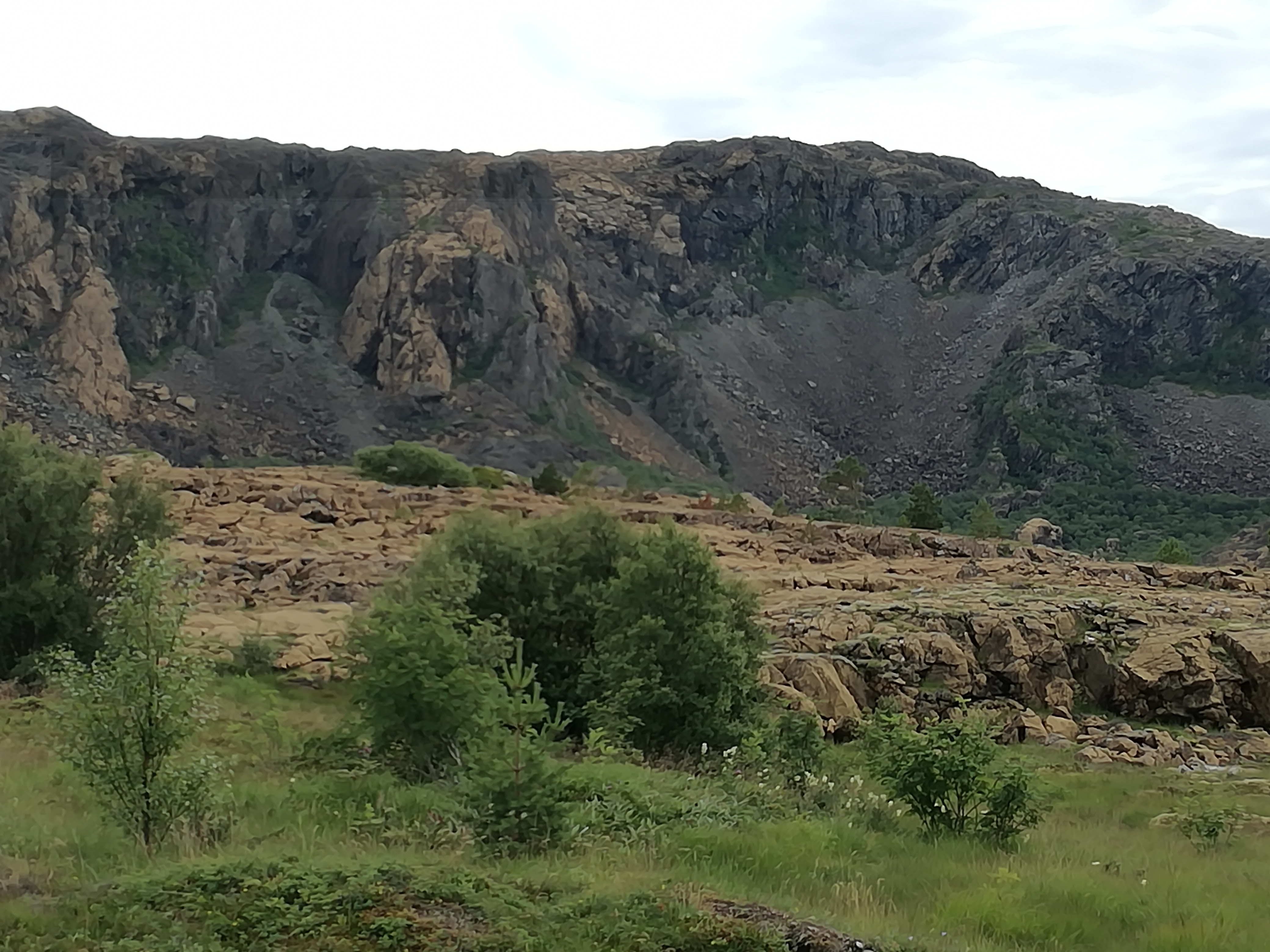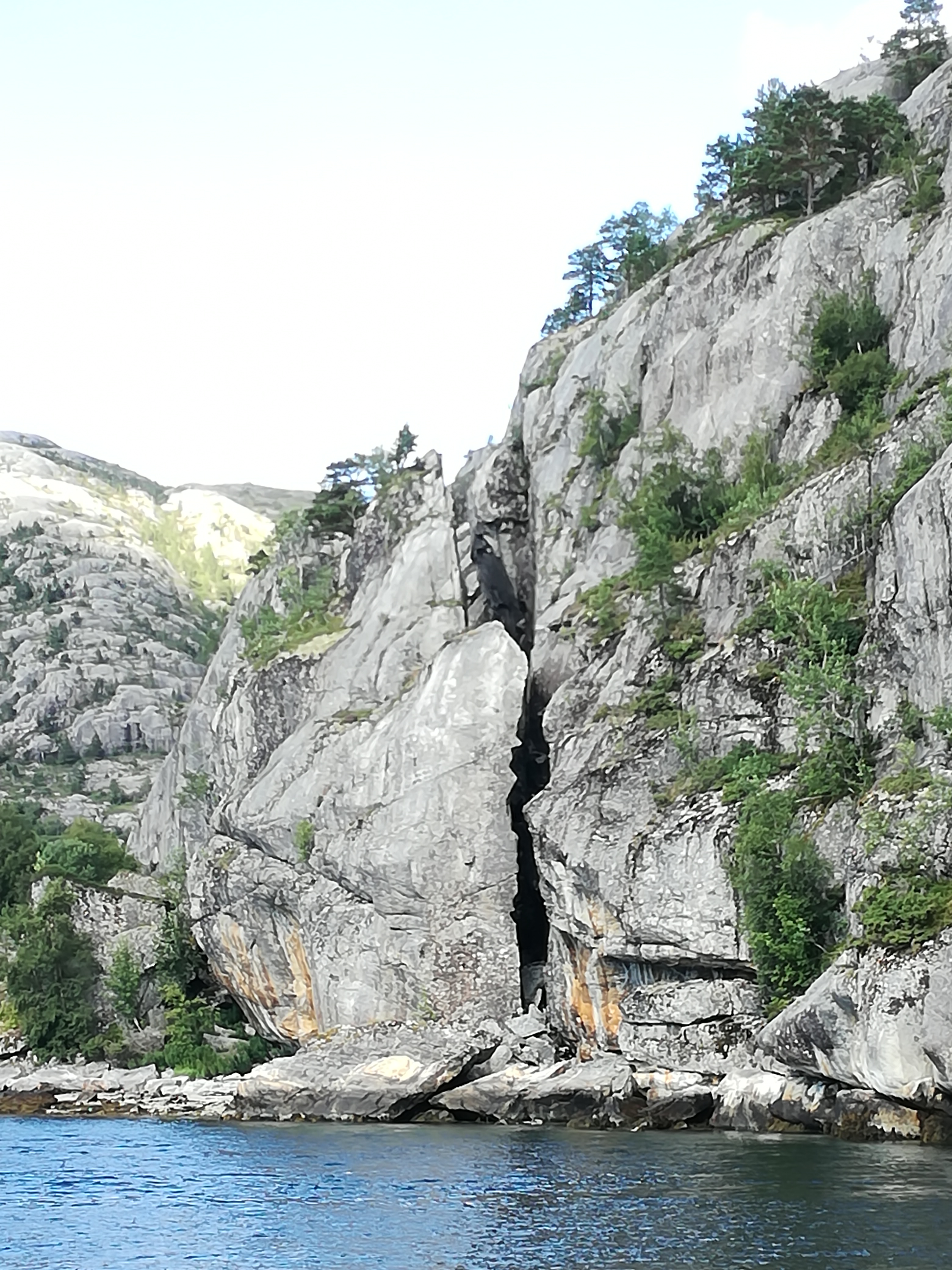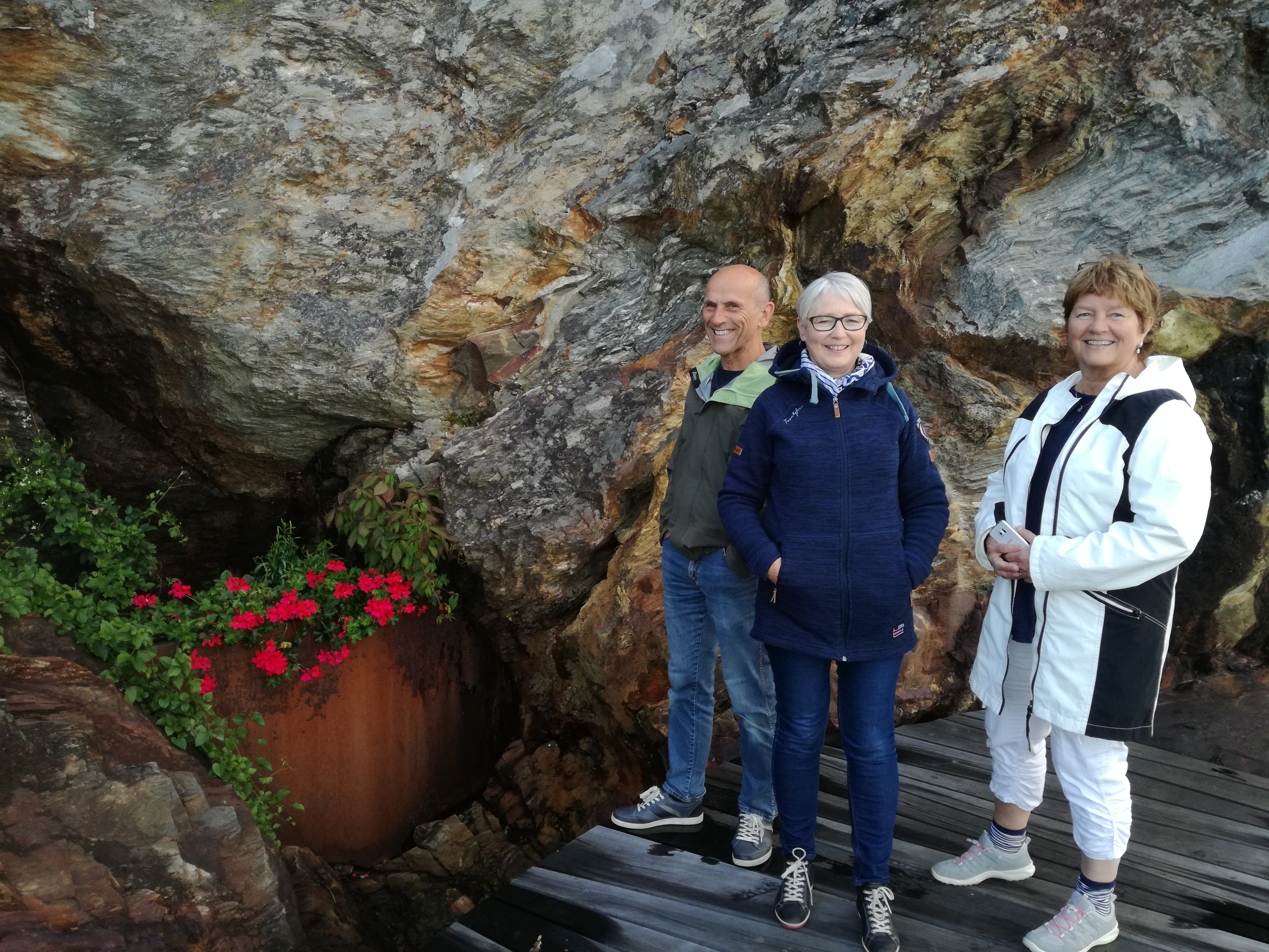 Next morning was overcast, threatening rain, but we set off on foot and reached Torghatten after an hour. A magnificent, natural miracle! The hole is 160 meters long and some 20 meters high, and what acoustics! Like a big cathedral. And as it was Sunday morning, and we were alone (almost) a hymn by the local, 17th century poet and pastor Petter Dass was a natural choice!