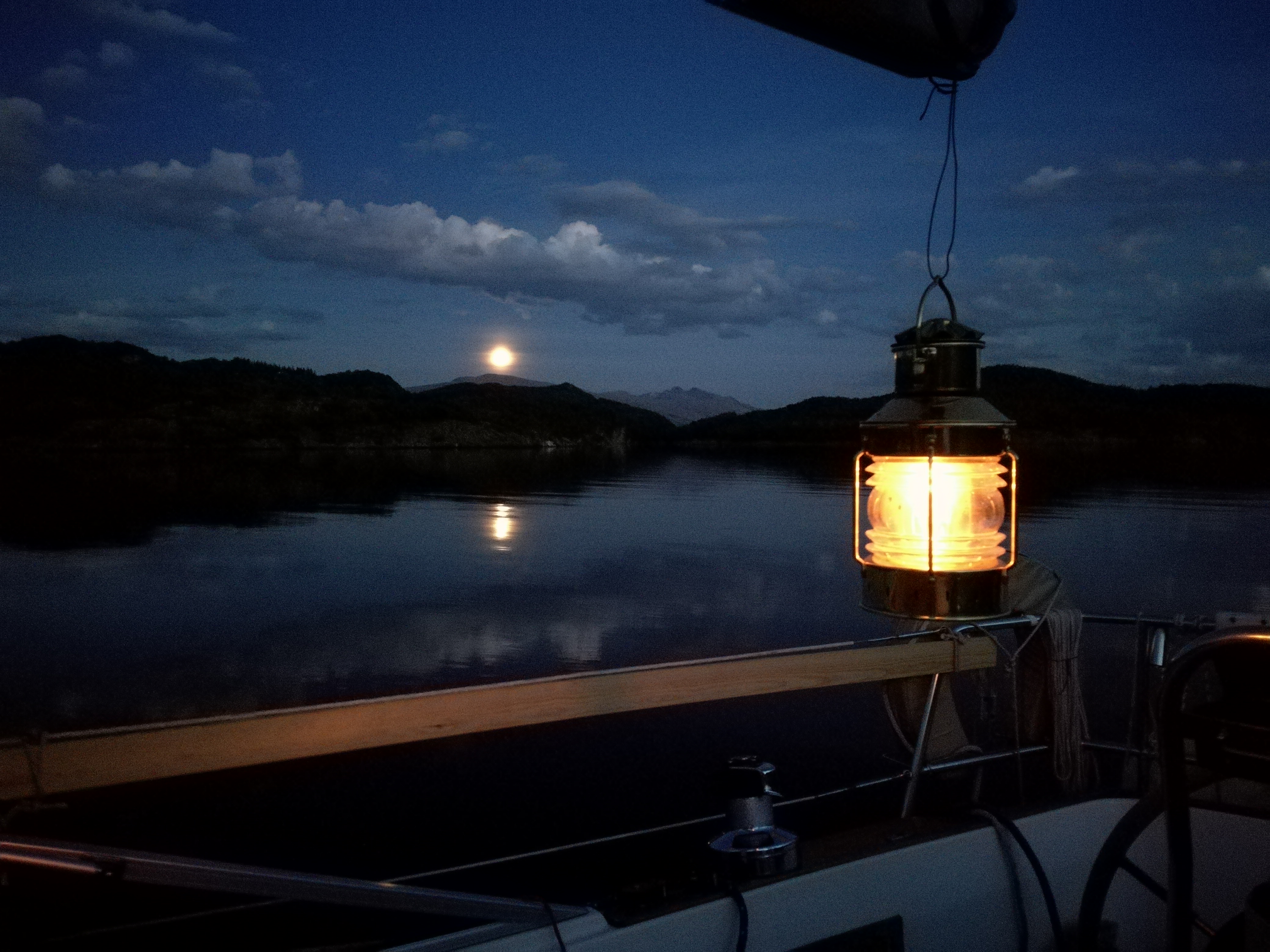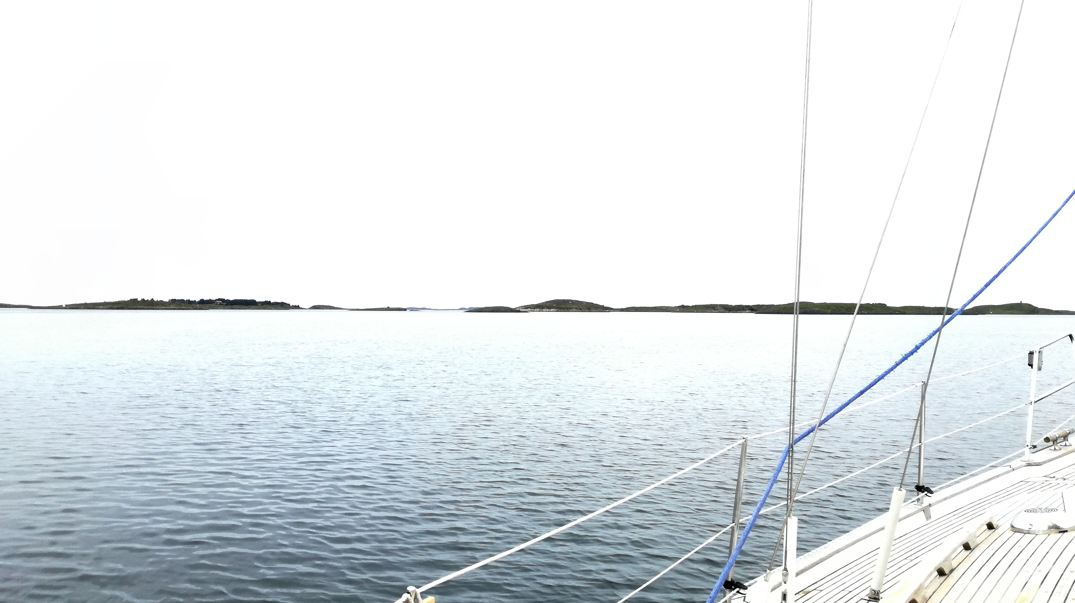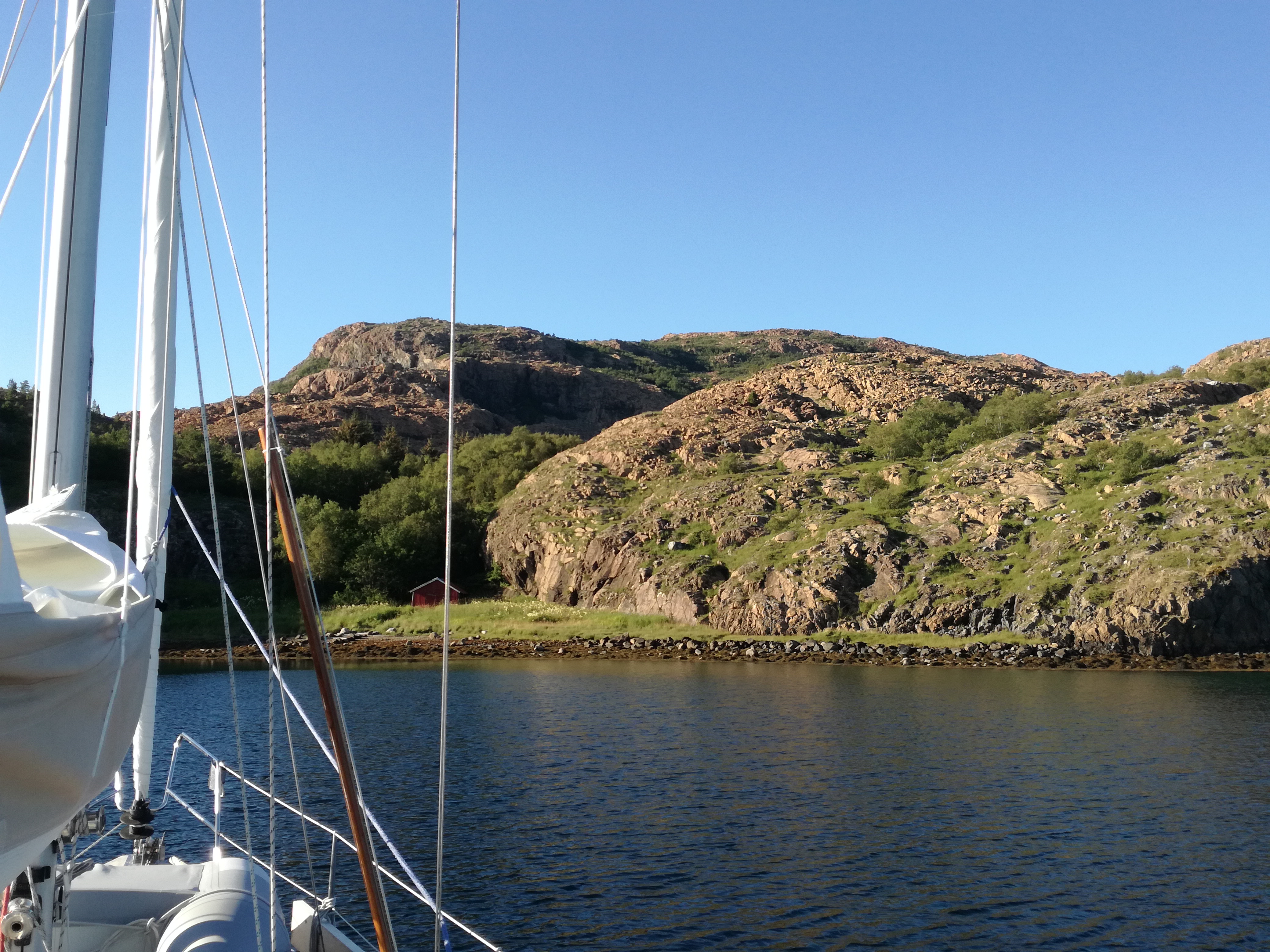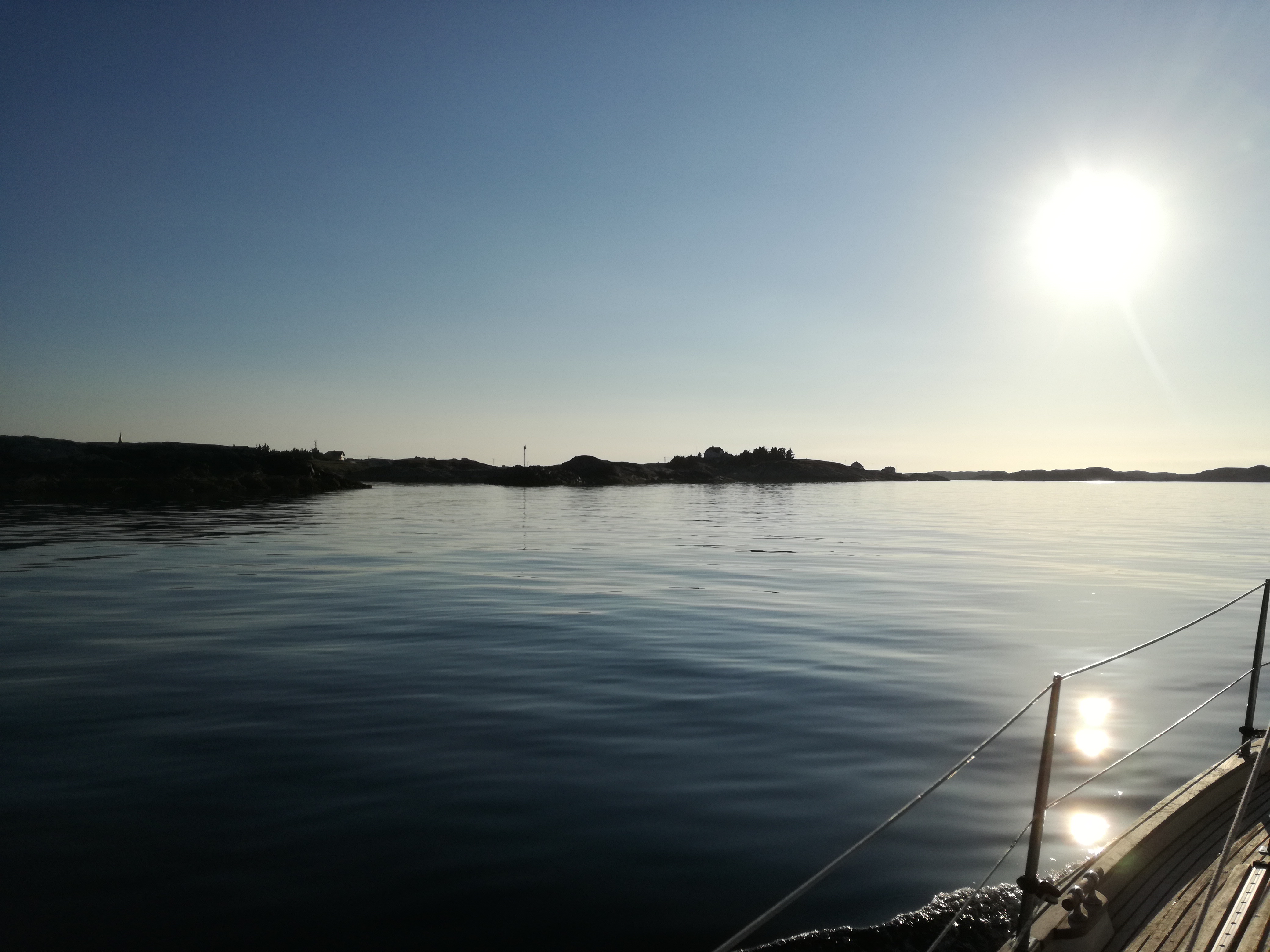 We planned to sail across to the main land and find a harbour there for the night. But the wind was better suited for sailing on north across the Folla, so we aimed at Sør-Gjeslingan. That would take us until next morning.