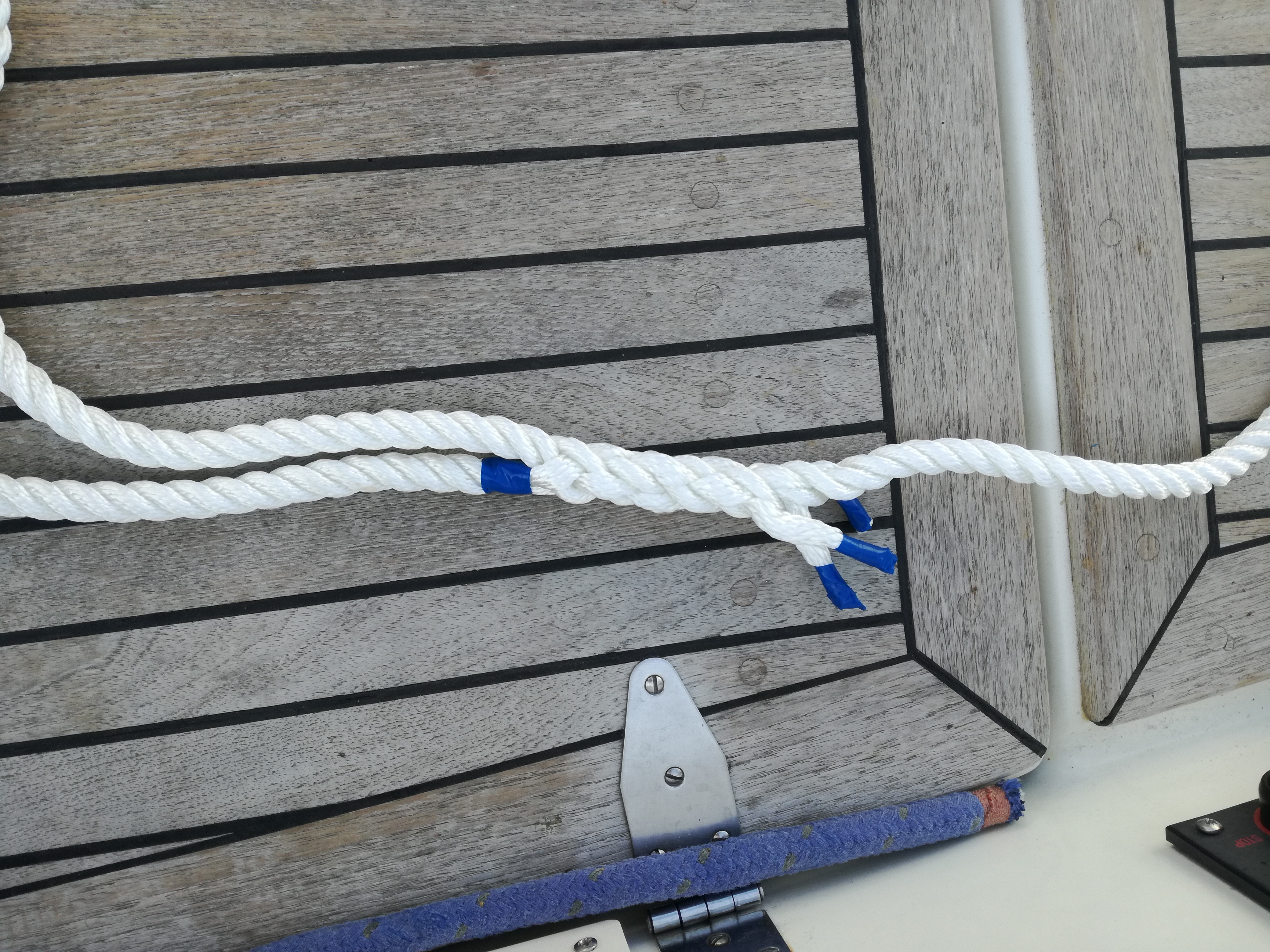 The new main sail has a third, deep reef. Good when the wind pipes up!