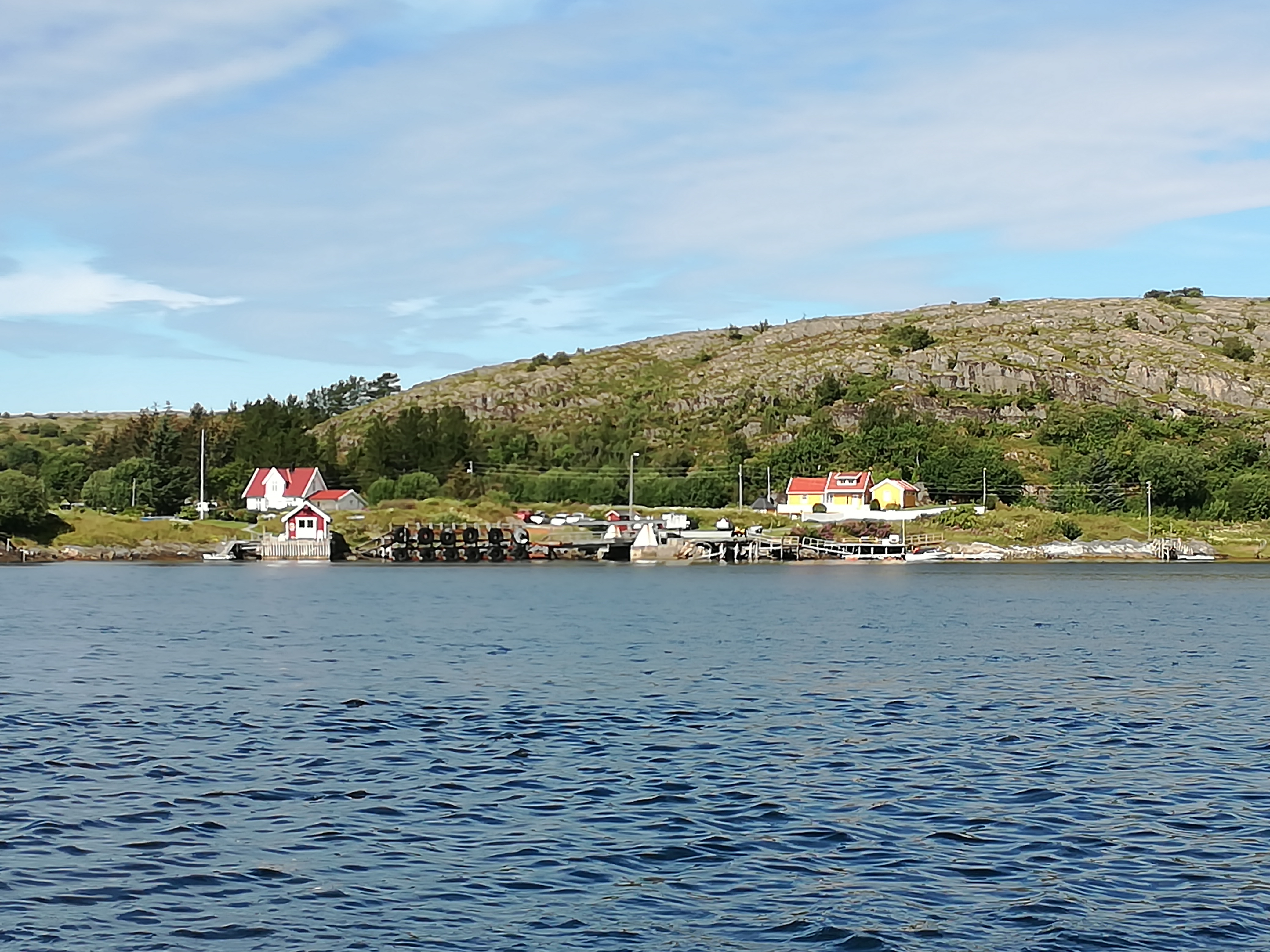 Out of Bergen harbour 14.45 in beautiful sunshine, but little wind. Motored two hours, then sailed for two hours until the wind died. Before we started the engine again, we had finner onboard. Moored at Fedje at 21.00, where we were well received by the harbour master.