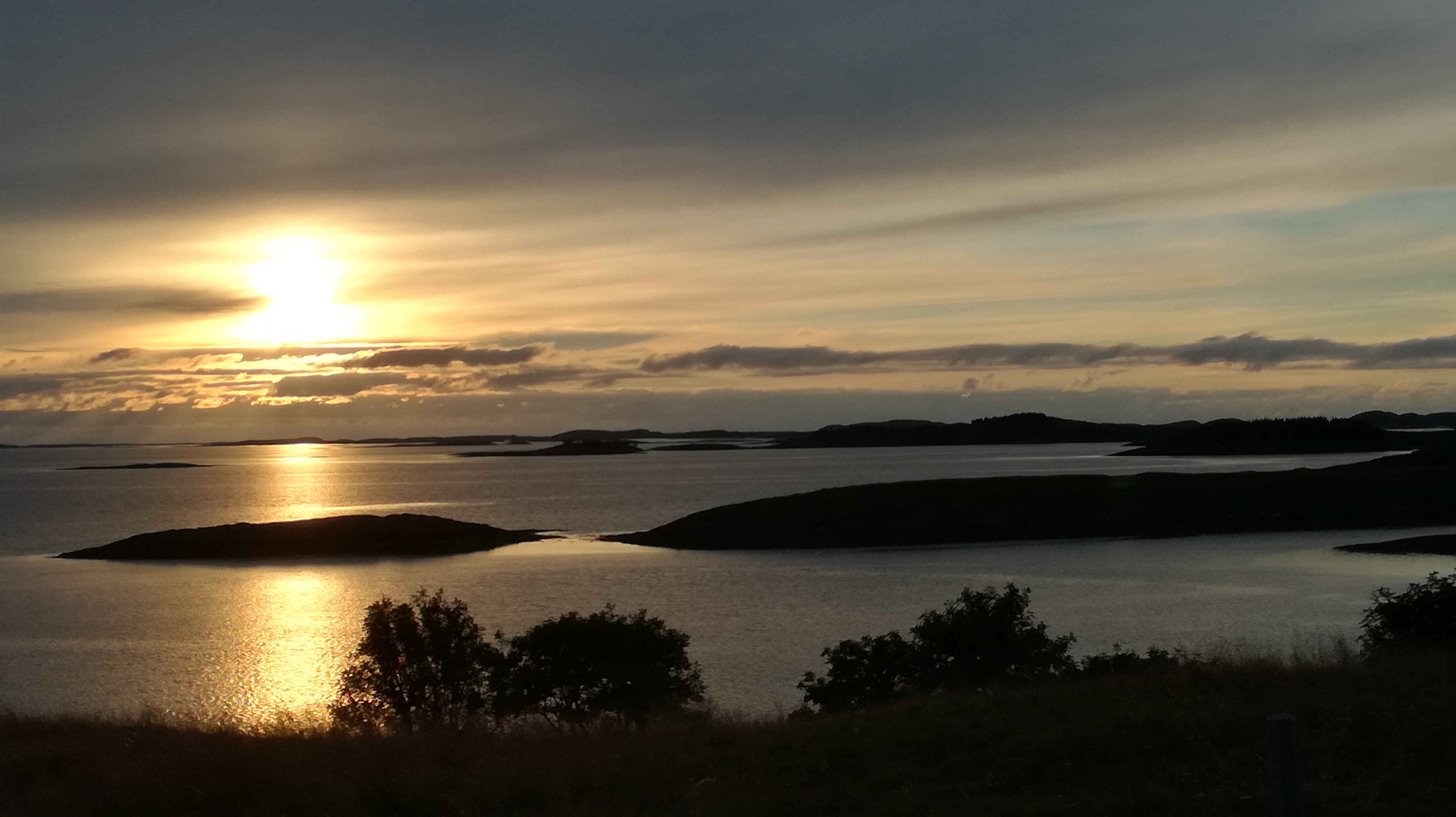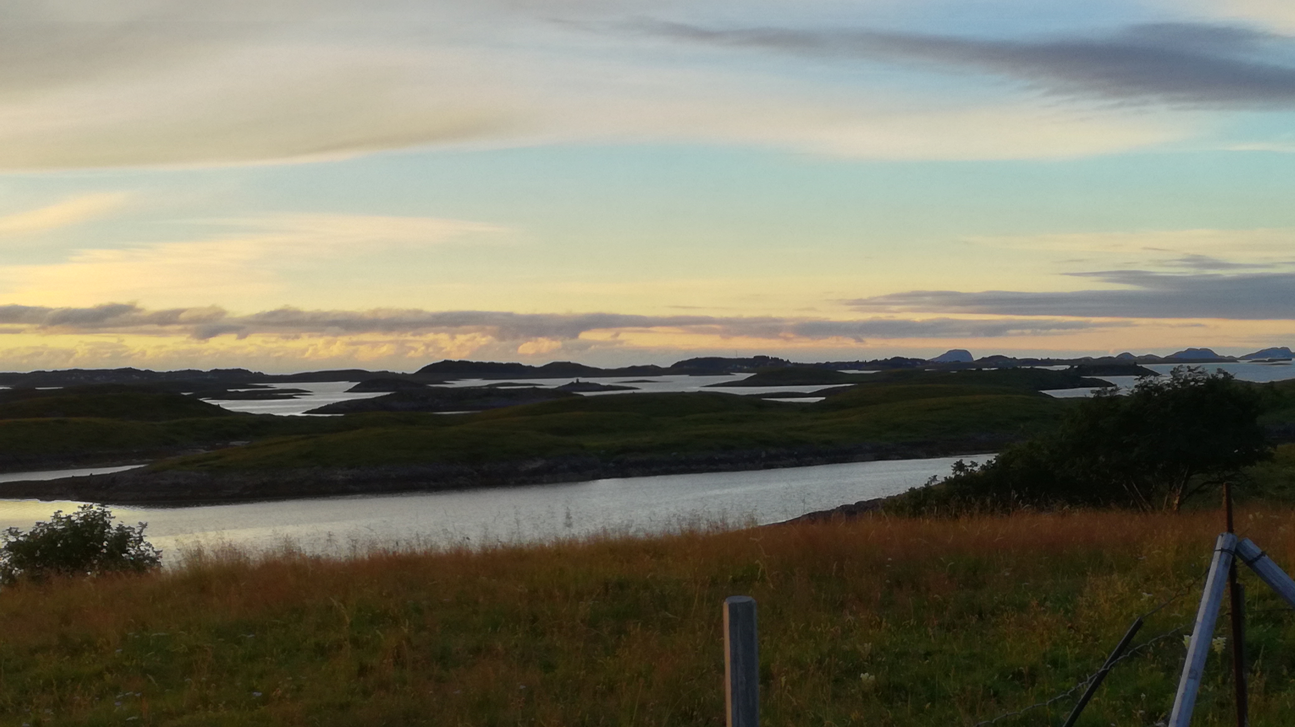Monday evening. Sitting on the highest point at the little island Skålvær, looking out on a fantastic seascape with hundreds of islands. It’s just something else! Actually, I was on another island not far from here already in August 1979, Austbø, but didn’t see or didn’t understand the uniqueness then. Later, Ellen and I have visited several places along the coast here, and a dream began to take form: to one summer sail among these islands! First I thought it would have to be in a rented boat, but now I am here with Vestavind!