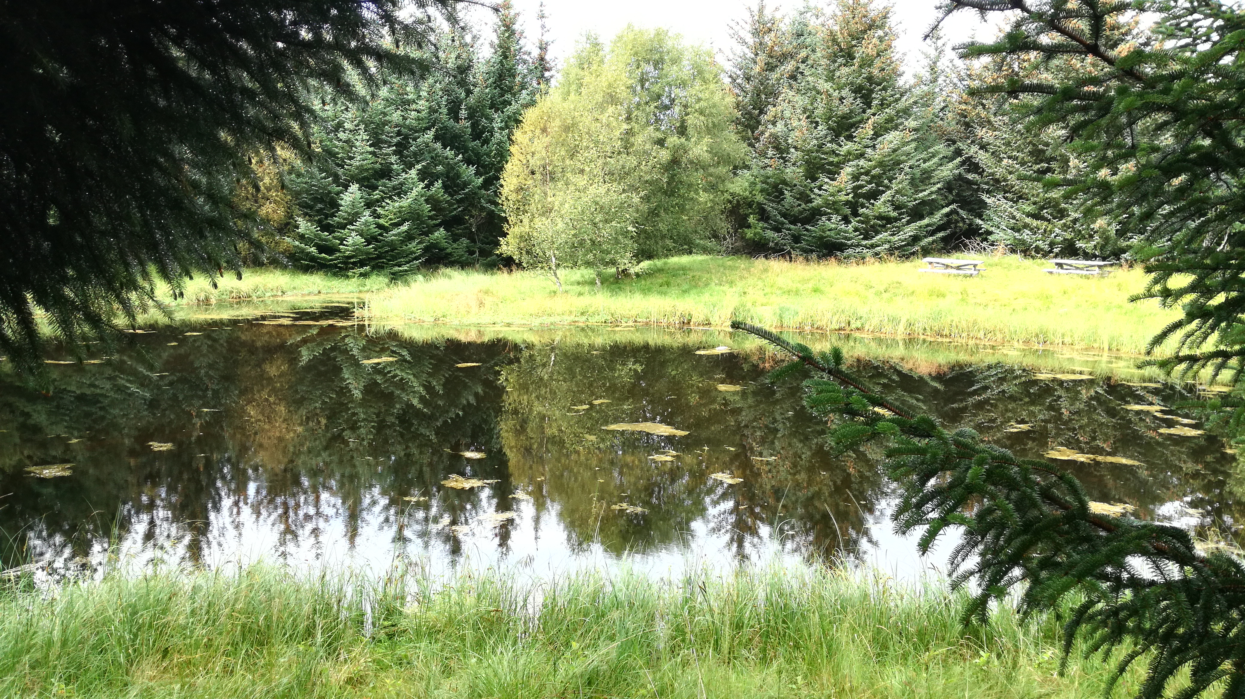 This pond was dug to make ice for the transportation of fish to England and Germany in the 19th century and into the 20th. The ice was broken into blocks and kept in a well insulated house. Because of that, and the mass of ice that was collected, it kept frozen over the summer.