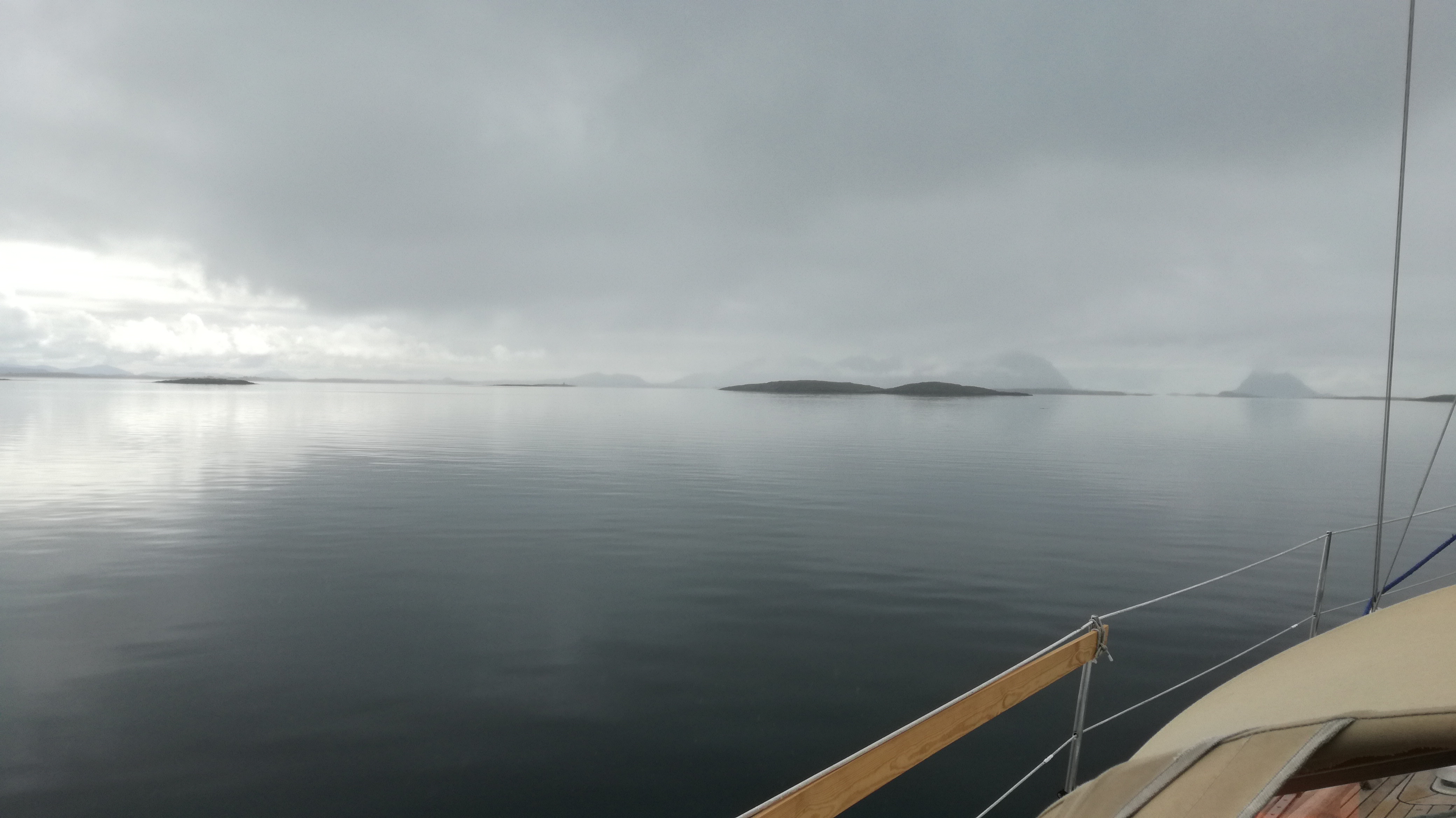 Today we crossed the infamous Hustadvika, an open coastline exposed to the North Sea. John, who has crossed it upwards of 200 times during his career as skipper, says he has never seen it this calm. We motored all the way, steering by autopilot, wearing only tshirt and shorts.