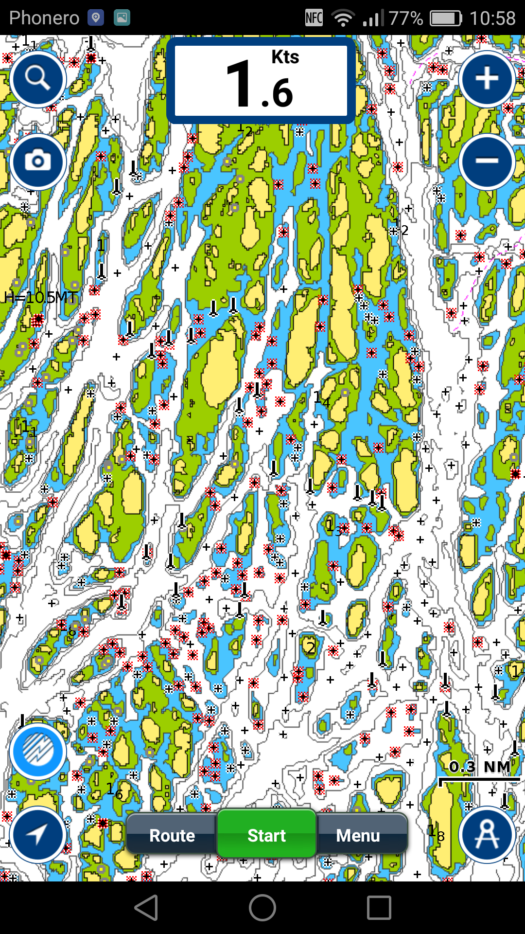 We are in the middle of the 6500-island archipelago. It’s only about 15 by 6 miles wide, but the islands being so low you can’t see many from the boat. But looking on the map, you get another impression. This portion is only a couple of miles across.