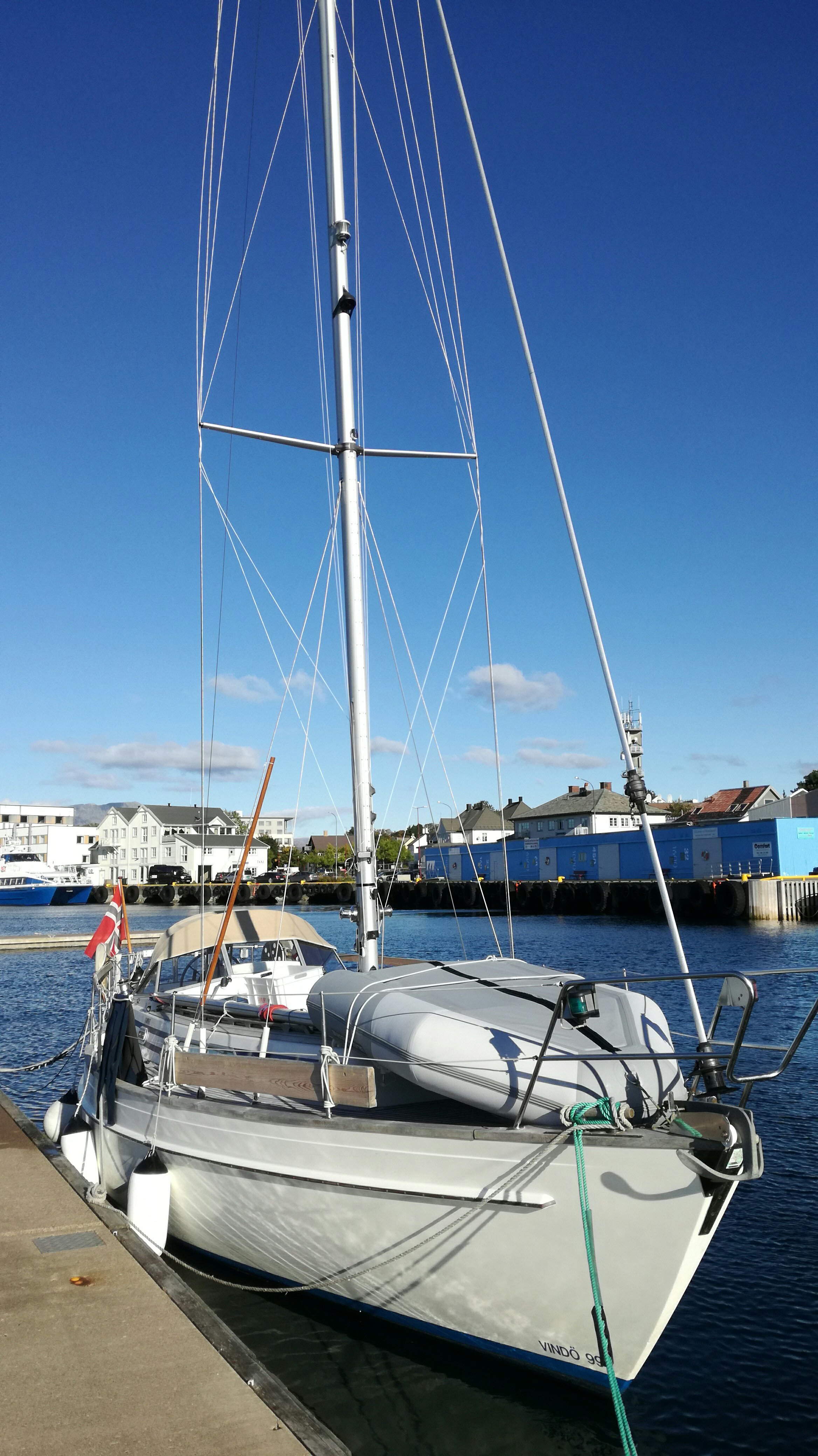 With the right sail trim this boat steers herself. The new sails from Gran (granseil.no) have made the sailing a much better experience than it would have been with the old sails. The laminated cloth, together with the fully battened main and triradial cut, make the sails easy to trim and forgiving to the crew. Vestavind points higher and sails faster with less wind.
