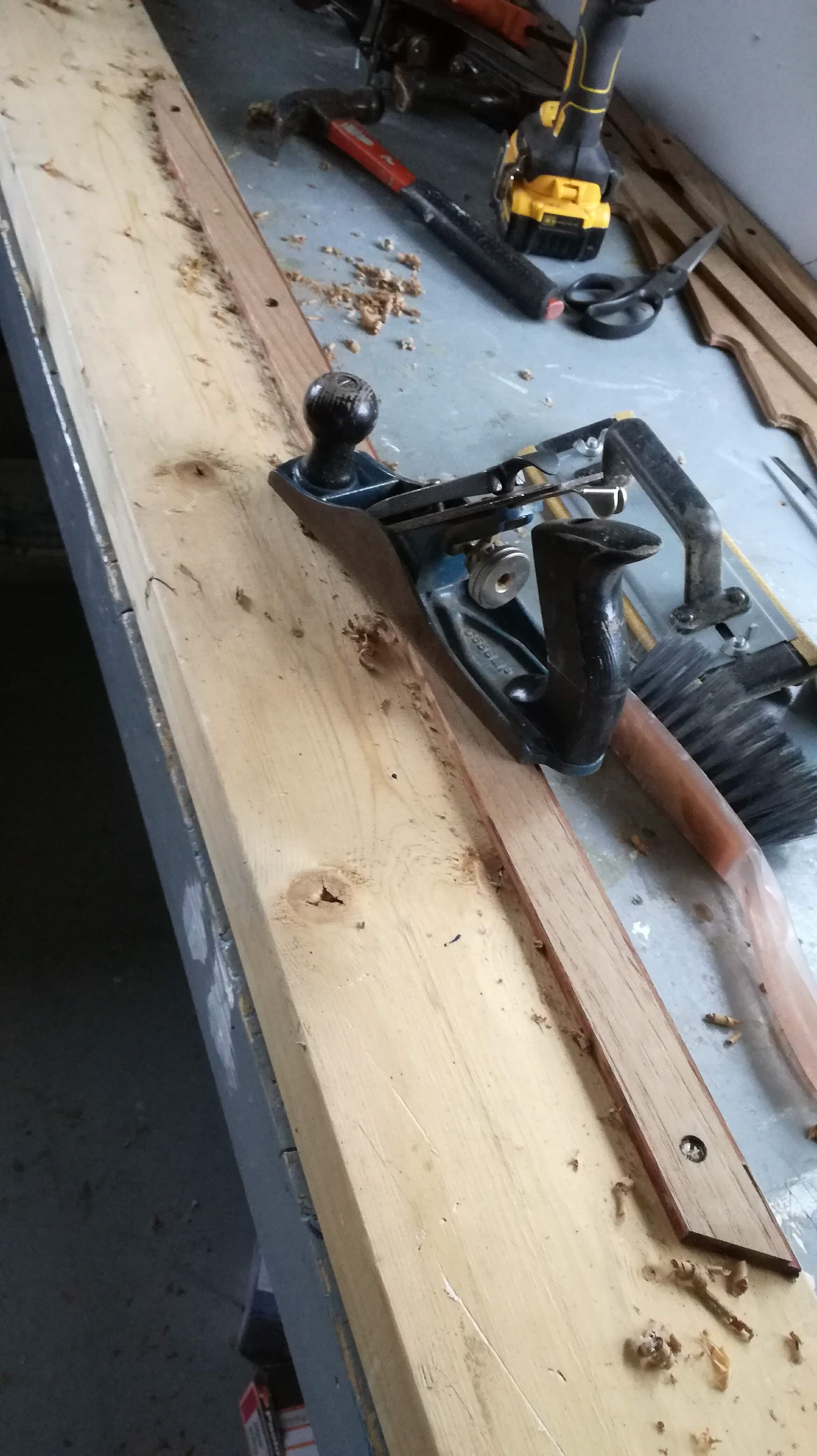 The strips that could be removed were plained and sanded clean, and the grooves for the caulking cut deeper, which was of course easier when I could work on each one separately.
