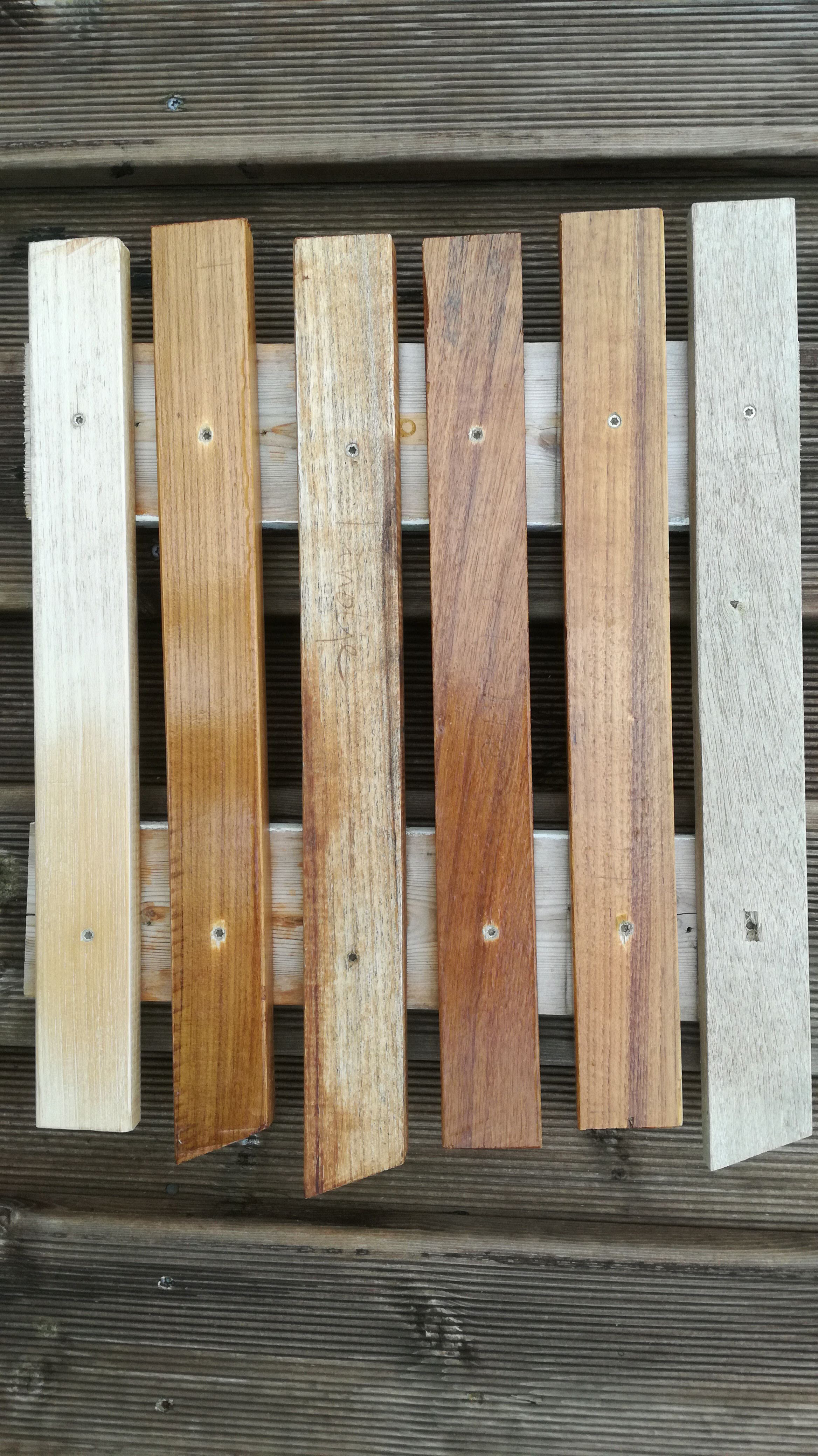 Here’s the result after one winter and spring out in the open. The Owatrol seemed to fair best, together with the Epifanes varnish, but I did not want the rails to be that shiny. Hempel teak oil on the far left below. I think that the above mentioned mix will be a good choice, but time will tell. I will have to repeat the treatment may be two or three times a year, but by using a cloth it is an easy and quick job, and a rewarding one.