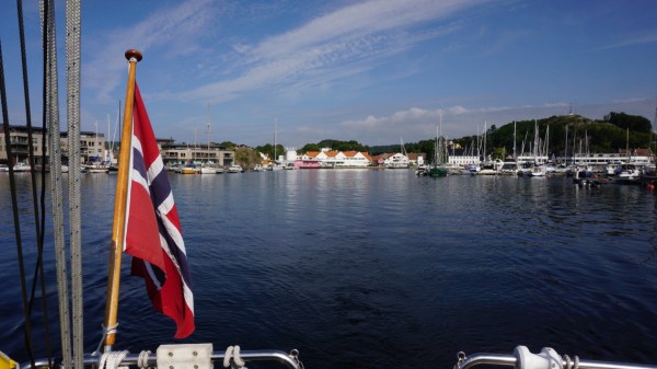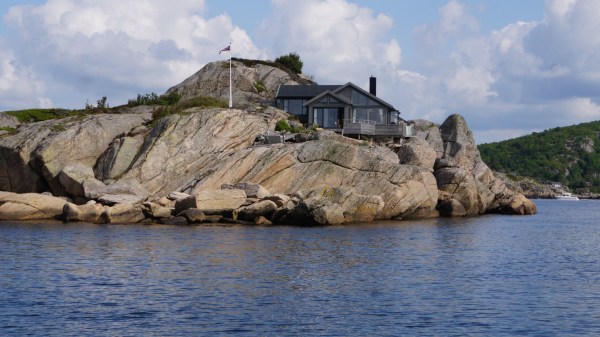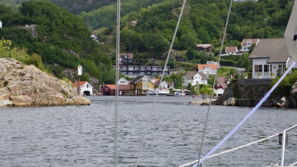 The morning was sunny and warm. We left Mandal 9.30 a.m. after having topped up our water and diesel tanks. There was a light south east breeze, but not enough to fill the sails, so it was motoring almost all the way. Here are some images along the southernmost coastline of Norway, including some nice cabins on small islands.