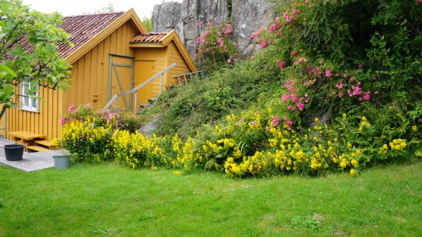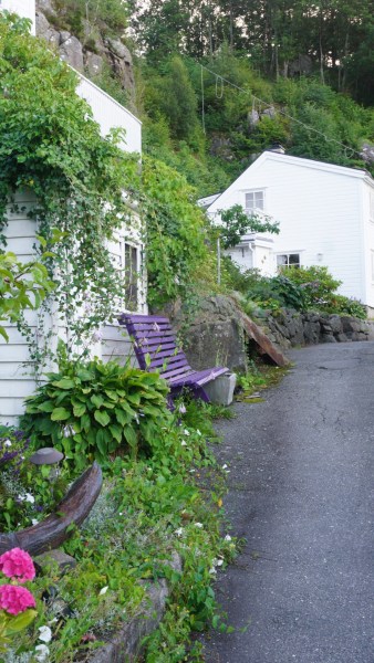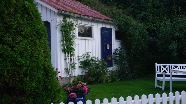 Korshamn is an old fishing community. We came in through a narrow canal lined with small houses that used to be inhabited by fishermen, seamen and craftspeople until the end of last century. As the old people died or moved away, the next generations use them as summer cabins. They are very well preserved and restored, at the same time as keeping the old, tight community atmosphere. Here is from a walk through the village. The path literally took us through people’s gardens.