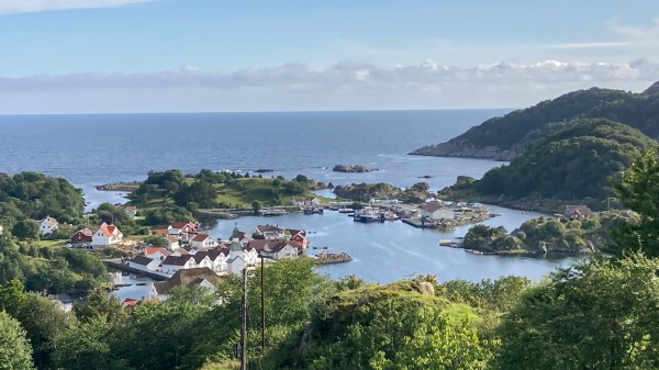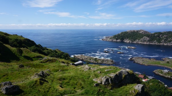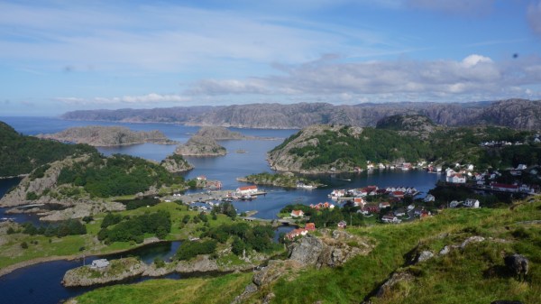 We took the bus from Rasvåg, and walked up to the top, only about a kilometer. It was fascinating to see, from the same spot, the dramatic change from the rough and wild coast, to the lush inland and snug communities just inshore.