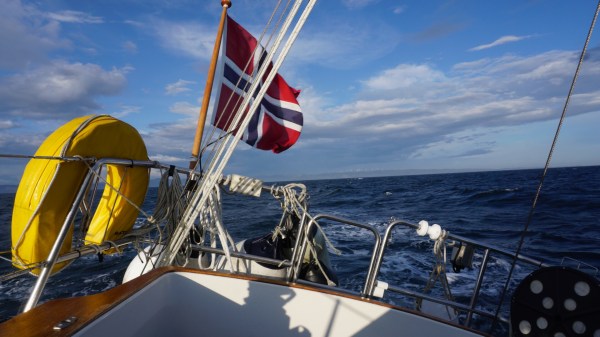 We decided to go. This boat came already reefed, a racing sailor once remarked on our boat (ref the low mast). When we came out in the open, we still set the main sail with two reefs, which means a smaller sail area. Reef often, and reef early, is a good rule to live by. Another one: A gentleman never beats! But no rule without an exception, or maybe we are not gentlemen, you choose, so for the first six hours or so, we beat into the wind towards the west. That meant not getting any closer to home, just far out into the North Sea. But that was our plan. We used the engine also, making six to seven knots through the night. Soon after midnight, we could turn north and basically follow the coast 15 to 20 nautical miles offshore, gradually drawing closer.