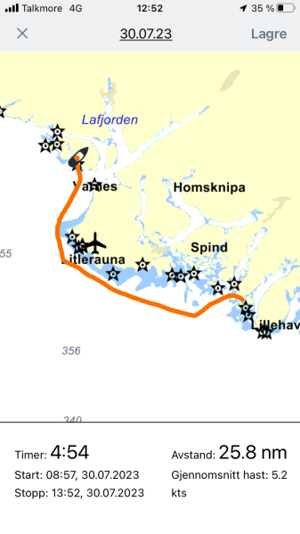 Vegard, colleague and sailing buddy, came in the afternoon. We had an agreement that I would call him when I was ready to sail home, and if he had the opportunity, he would come and join me. Vegard used to sail a 26 foot IF, and has crossed the open stretch along this coast many times. “It is a bad stretch” he said. “You can always expect difficult conditions.” We discussed whether we should go straight away or wait until later, as the forecast said less wind early next morning.