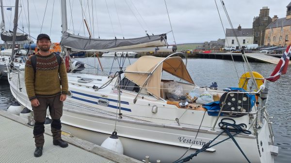 Back in Lerwick, the marina is filling up. Both due to weather conditions, and also because school holidays have started in Scandinavia and Europe. Poor little Vestavind is sqeezed behind four big boats, from Norway, England and Germany.