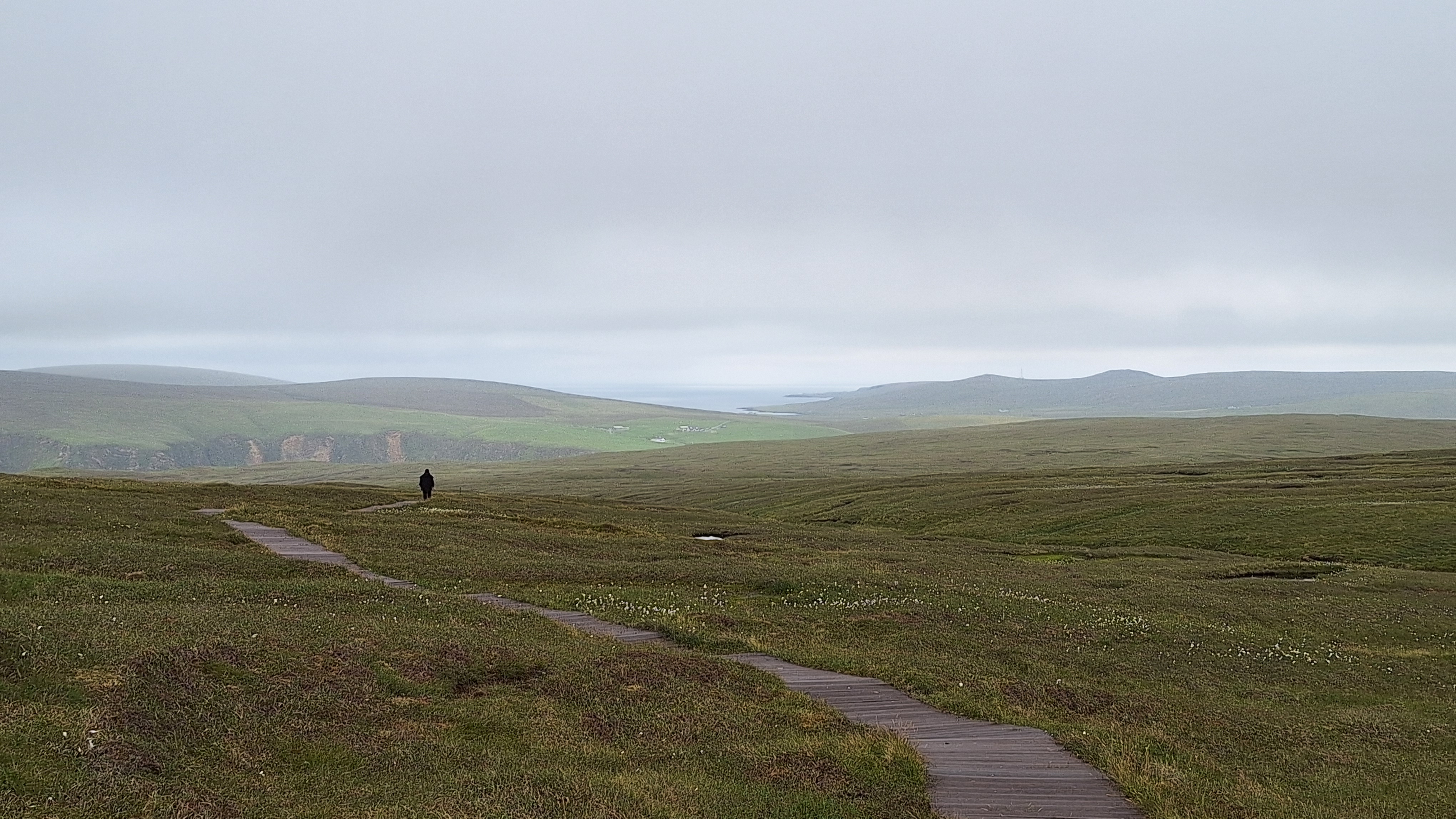 So we continued to Unst. Highlight here is again the cliffs at Hermaness Nature Reserve. And the wide, open landscapes, with scattered settlements and always, the sea in the background.