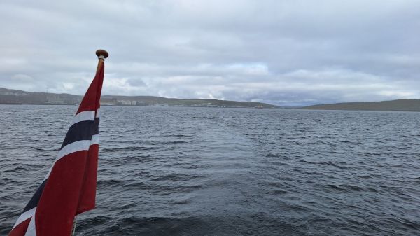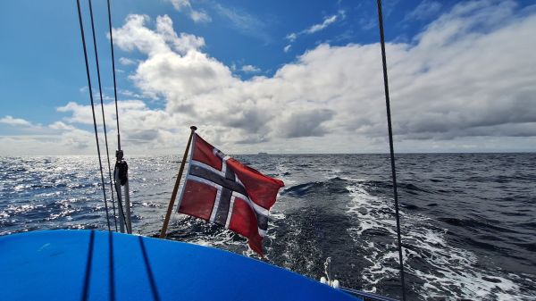 We left Lerwick at 9 a.m. local time. We had little wind the first day, and the sea was calm. So there was no sailing, just motoring. The autopilot had problems, and we had to hand steer all the way. That’s tiring, but rigging a system with elastic, rope and pulley helped.