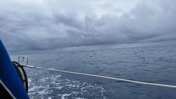 As night approached, clouds thickened and I worried for some time about visibility. We would also pass some oil fields in the middle of the night. But it turned out to be quite uneventful. Showers passed around us, but we always had one ore more rigs in sight and could maneuvre by them and the information the chartplotter gave us.