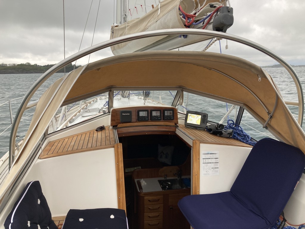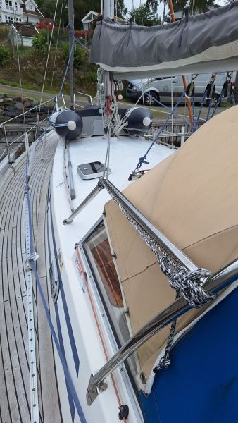 Something was obviously missing on the boat. When going forward on deck, especially out at sea, there was not a handhold that really was strong enough to feel safe. I asked Hans at Ship Shape in Stavanger to help me, in 2021 actually, and he built a very solid frame from 30 mm stainless steel tube. This also makes a good point on which to tie safety lines. For moving around in the cockpit, or standing up steering, it is only an arm’s length away. It feels like a key strong point on deck. Not exactly cheap, it is however one of the best investments I have made on the boat. And for the grandchildren, a fun swing bar!