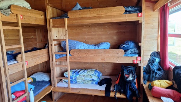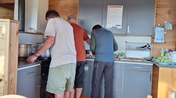 Kjeldebu er såkalla sjølvbetent, dvs der er matlager som me kan handla frå, men me hadde med mat til middag og frukost. Turleiarane var også kokkar fyrste kvelden! Dei to andre hyttene har full servering av middag og frukost. God mat på alle hyttene!
