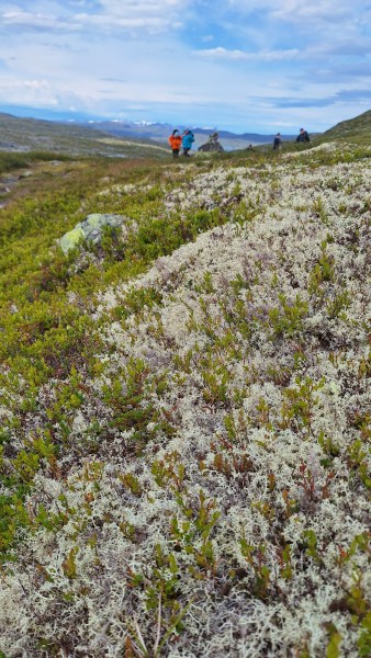 Noko av det som fasinerar på Hardangervidda er det vide utsynet (me er jo på ei vidde), elvane og bruene over dei, plantene som du må ned på bakkenivå for å skikkeleg kunna sjå, luktene og lydane. For det er ikkje heilt lydlaust her. Men det er berre naturlege lydar. Vatn som renn, brusande elvar, sus frå vind, fuglar. Godt for kropp og sinn! Får me tru, men det kjendest i lår og legger i fleire dagar etterpå!
