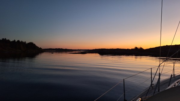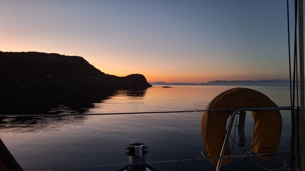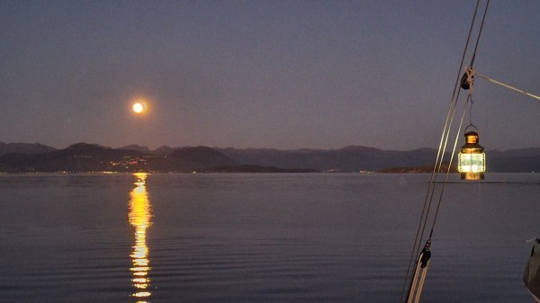 I started out Thursday September 19, early afternoon. There was a light SW breeze, which took me south towards Stavanger. I intended to visit the town on Friday, but dropped the anchor in twelve metres of water, three miles north of the town, among some small islands, just as the sun went down and the moon was rising. The night was dead calm, and even if I was quite close to town there was not a sound to be heard, except for some sheep on one of the islands, and a heron’s lonely cry.