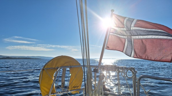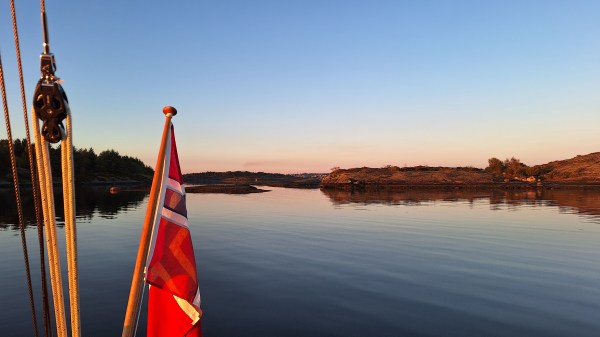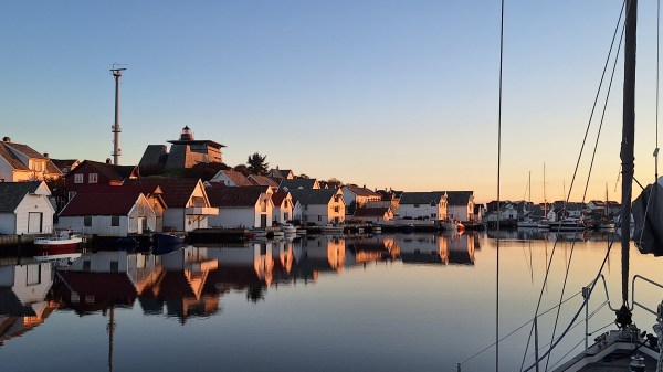 After a peaceful morning, I motored into town, did some shopping, and beat out west to Kvitsøy in the afternoon. A light breeze was straight on the nose, so it took some hours to cover the twelve miles. But eventually, as the sun went down, I could tie up in a corner of Ydstebøhamn. There were some few other boats there, both sail and motor, who also had found the way out to this archipelago on the edge of the North Sea this beautiful weekend.