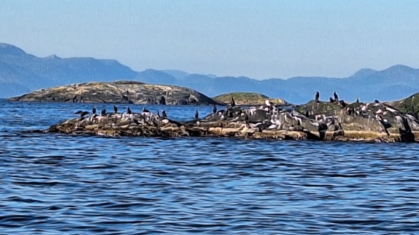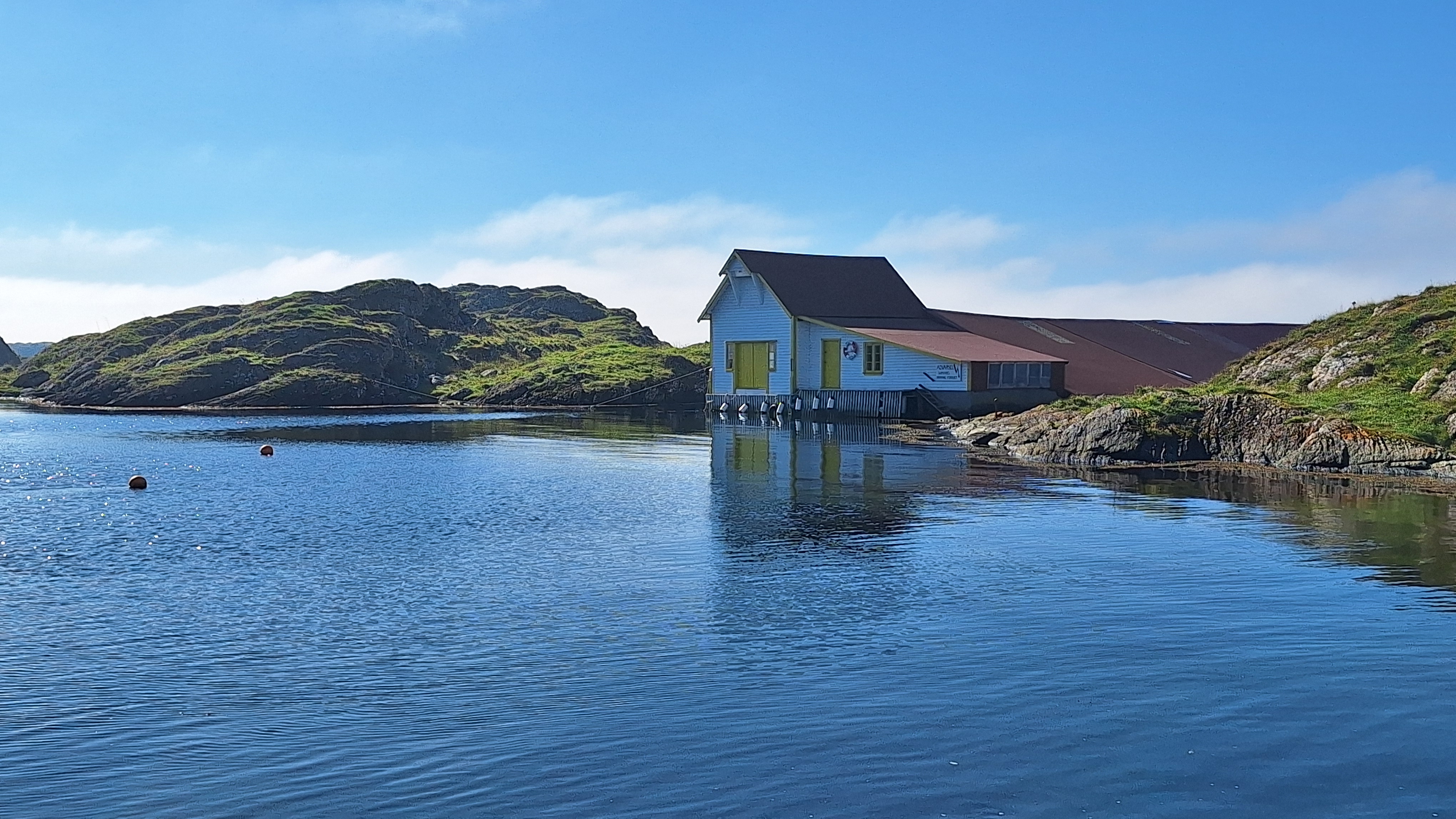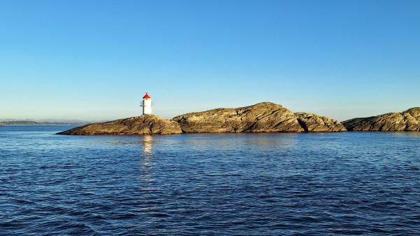 Afternoon sail north east to another, small group of islands. These are uninhabited, and are just west of Finnøy, about six miles from home. A favourite place to visit, but not in northerly winds. But now the wind was westerly, and the little bay provided perfect shelter and anchorage. When conditions allow, I like to not use the engine. So this time I was able to sail from the berth in Ydstebøhamn to the anchorage in Vignesholmane. Great satisfaction! With the feeble wind, it took some time to get through the narrow channels out of Kvitsøy, so other boats had to wait. But they were patient and polite. I only had to fire up the engineering to cross the ferry lanes as quickly as possible. The ferries come upon you very fast!