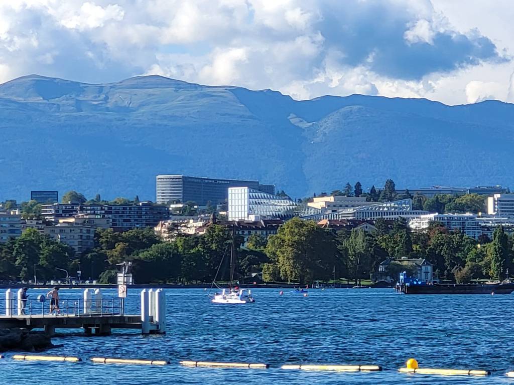 Og nå kom finveret! Strålande sol heile dagen. Geneve er jo ein by der fleire FN-organisasjonar har hovudkontor, som t.d. høgkomissæren for flyktningar. Verdens helseorganisasjonisasjon, Raudekrossen og Raude halvmåne held også til her.